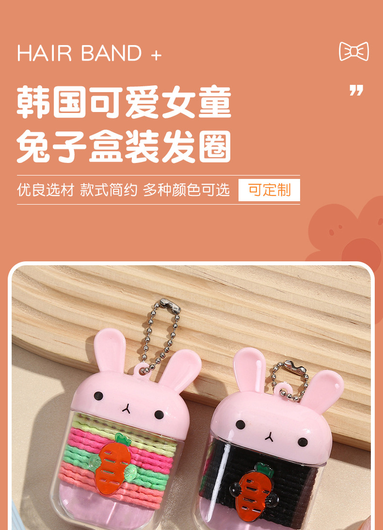 韩国可爱女童兔子盒装发圈头绳少女不伤发弹性好发绳儿童扎头发彩 投诉