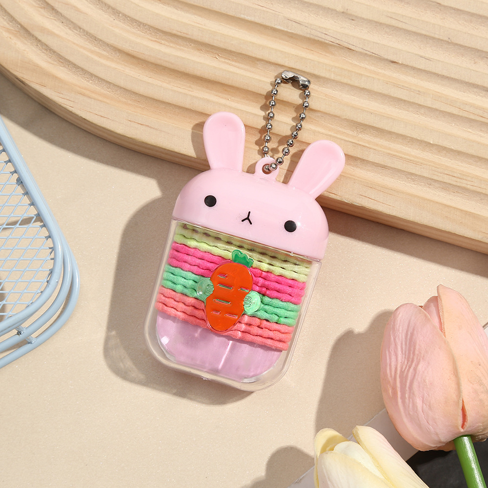 韩国可爱女童兔子盒装发圈头绳少女不伤发弹性好发绳儿童扎头发彩