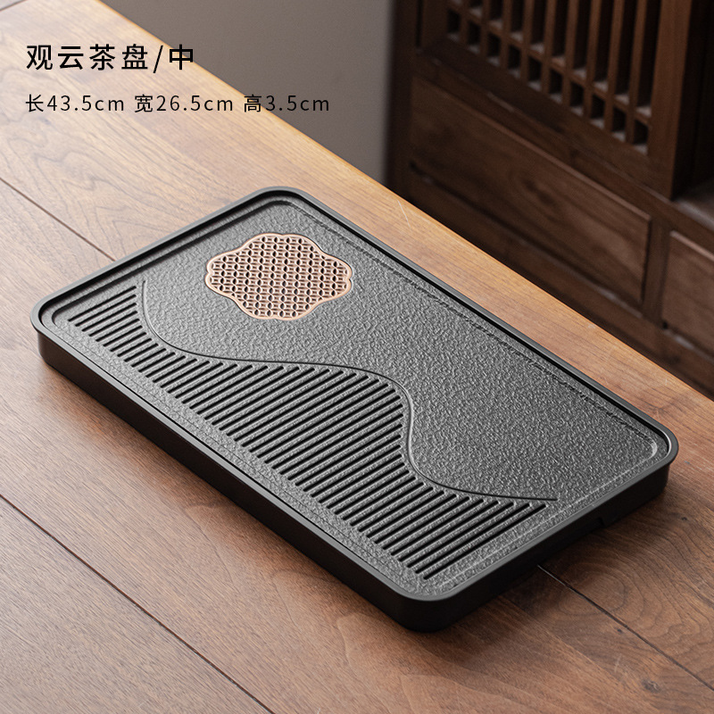 仿乌金石储水茶盘蓄水排水式中式干泡台茶托现代茶台家用简约托盘