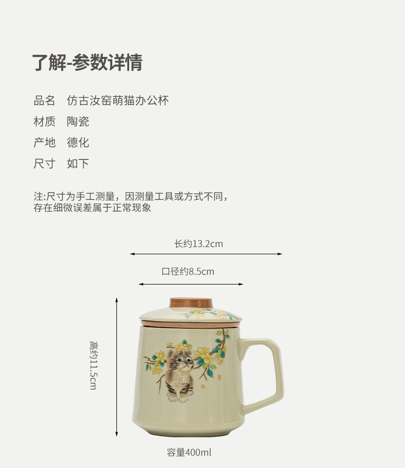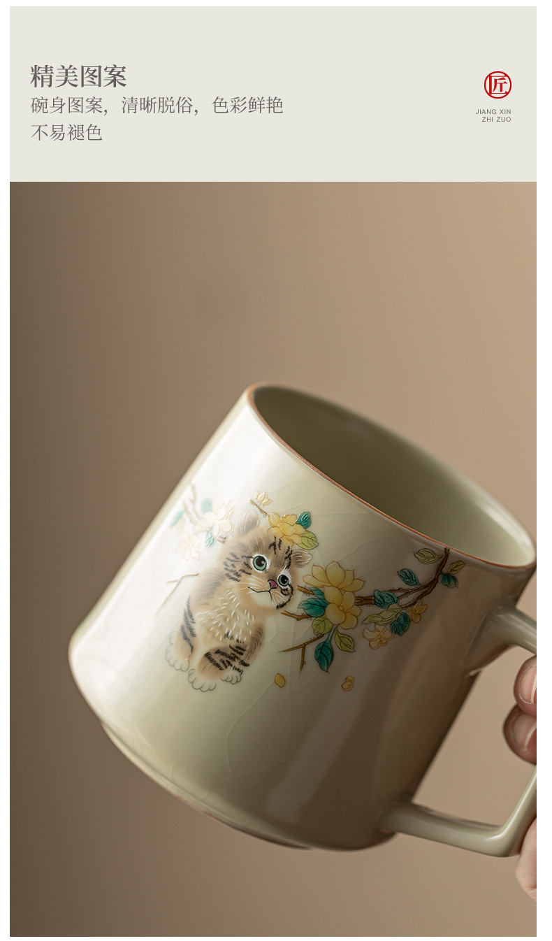 汝窑萌猫办公杯陶瓷可养茶具过滤泡茶杯水杯家用个人杯带盖马克杯 投诉