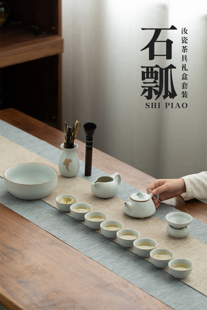 汝窑茶具套装家用办公室会客高端功夫茶杯简约礼盒装礼品加印logo