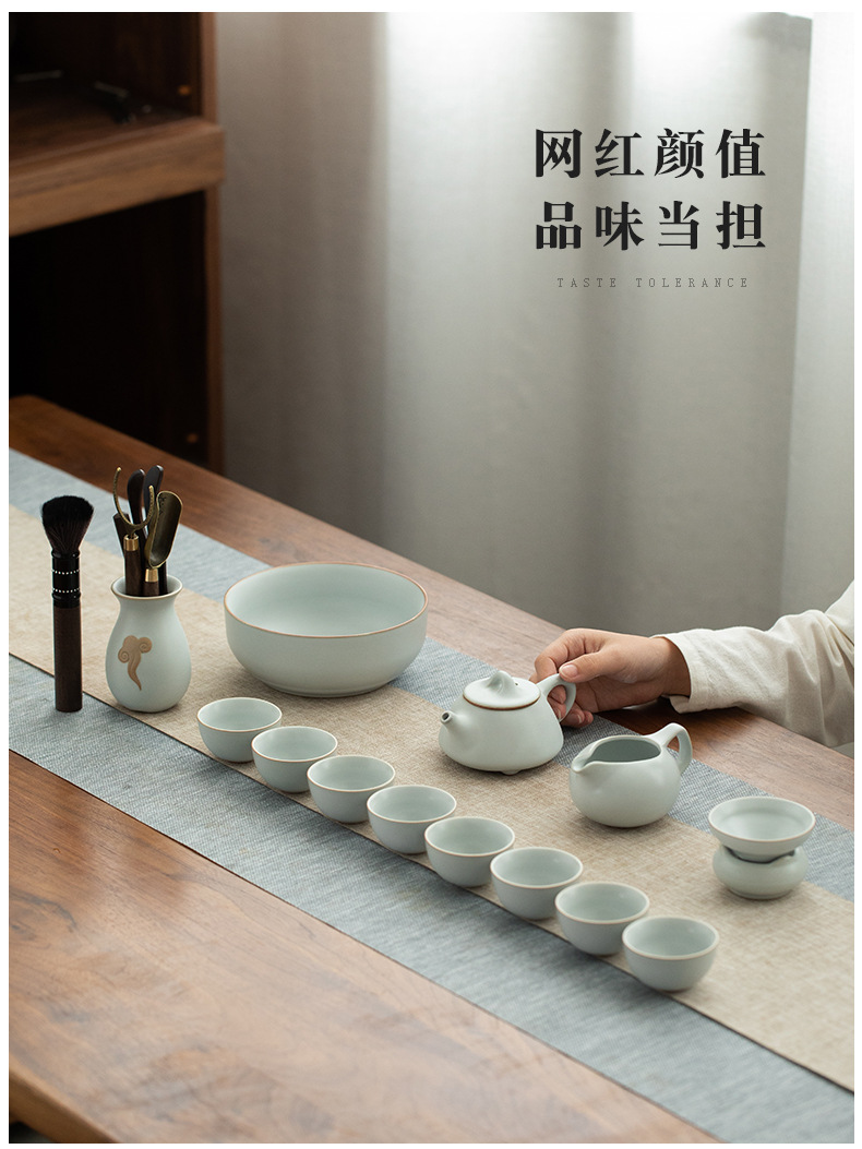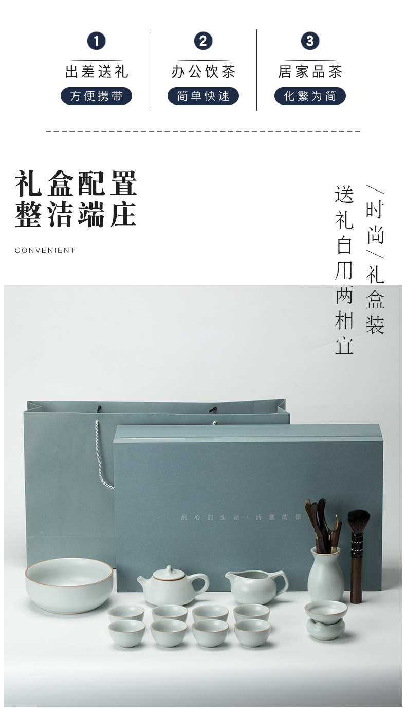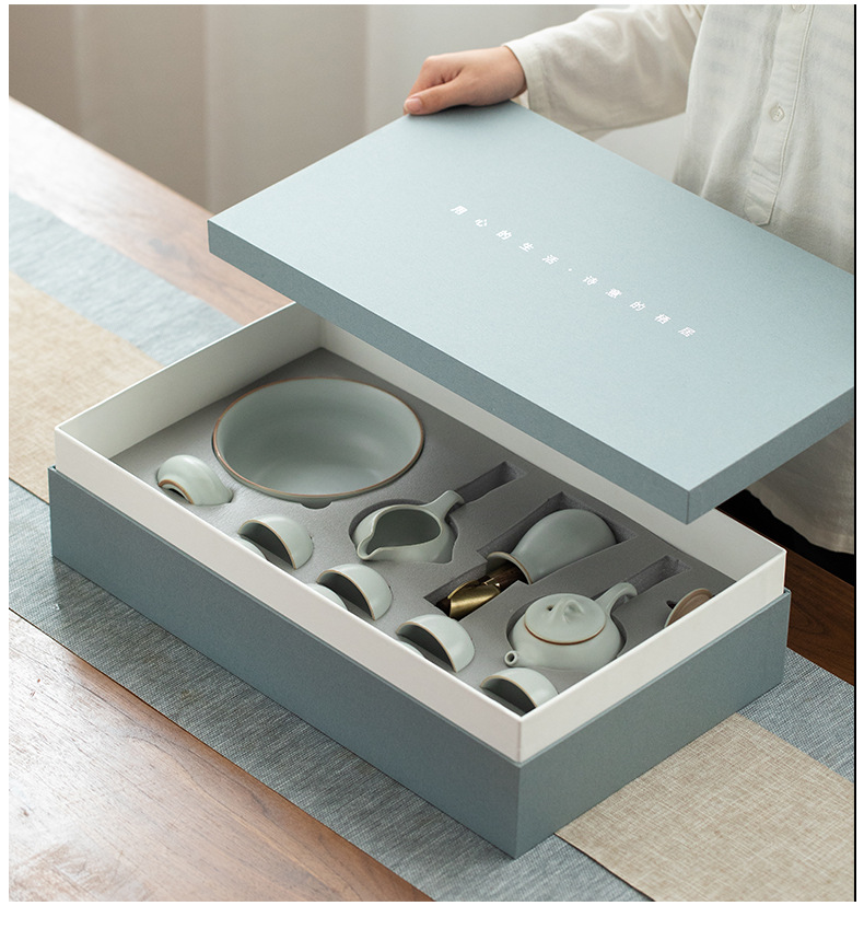 汝窑茶具套装家用办公室会客高端功夫茶杯简约礼盒装礼品加印logo 投诉