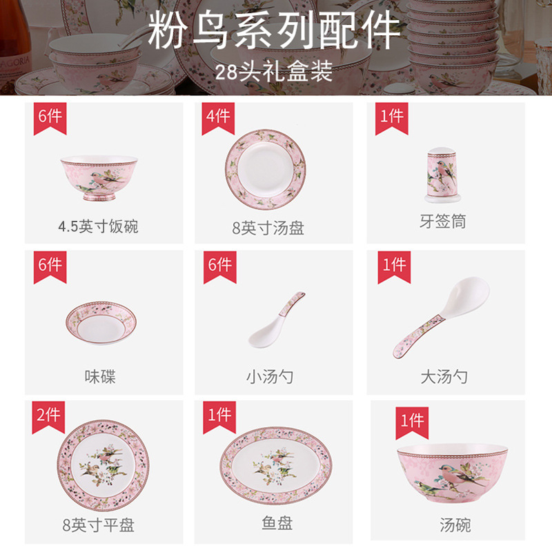 粉鸟-28头餐具套装 礼盒装 ¥74800 100套可售