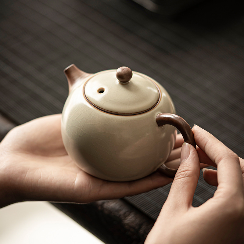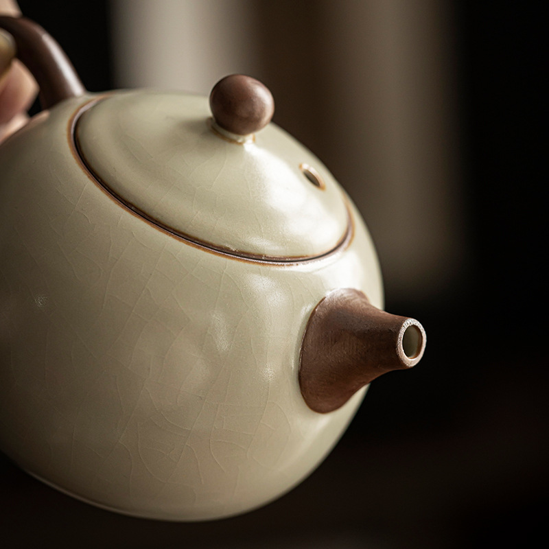 汝窑陶瓷茶壶家用办公室简约复古手抓壶泡茶器单个泡茶壶泡茶茶具