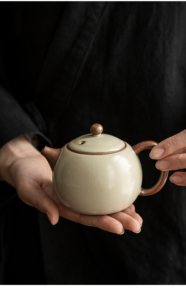 汝窑陶瓷茶壶家用办公室简约复古手抓壶泡茶器单个泡茶壶泡茶茶具 投诉