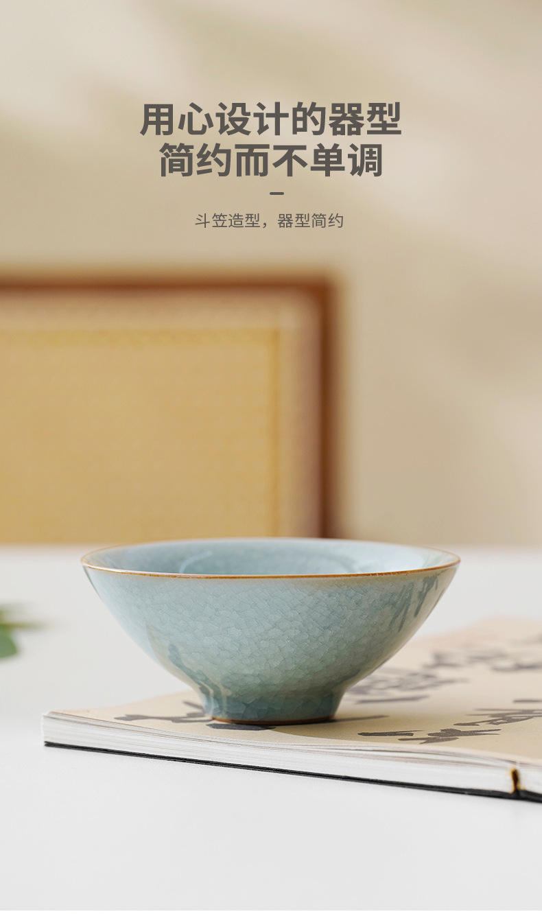 汝窑冰花主人杯单杯开片个人专用茶杯陶瓷品茗杯功夫茶具茶盏家用
