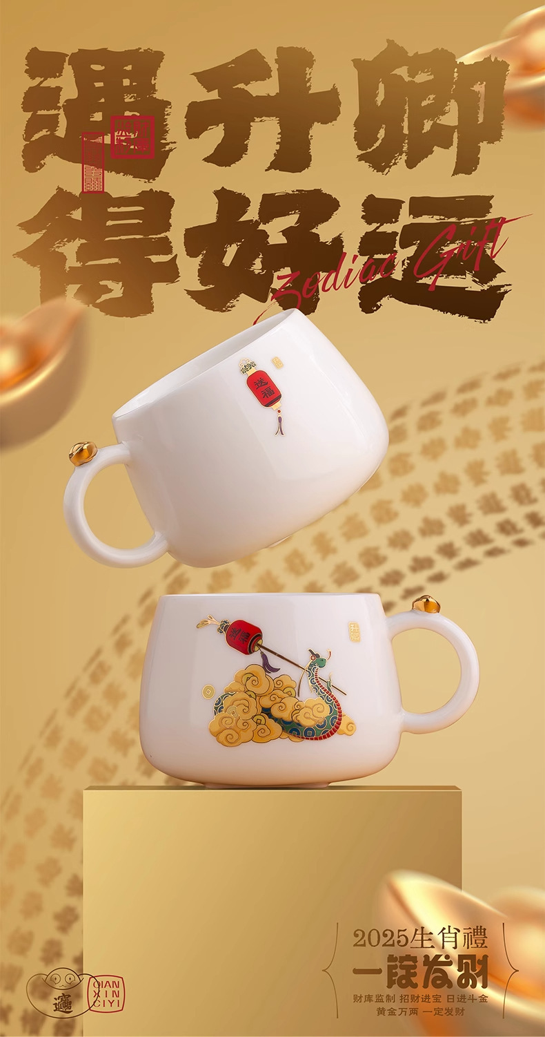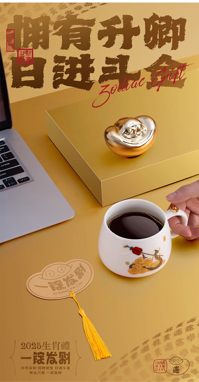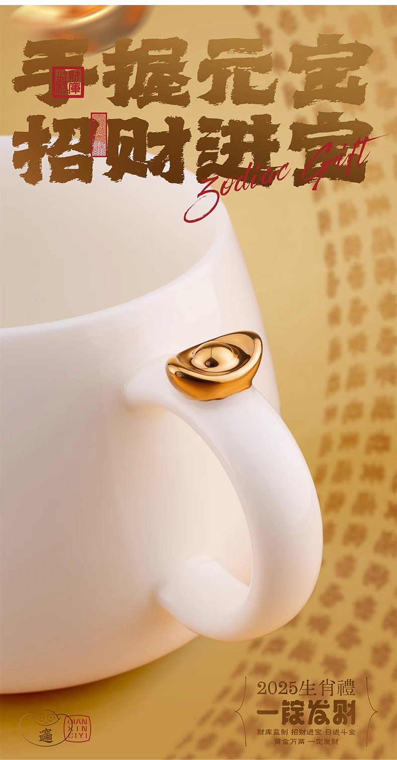 上古一锭发财咖啡杯子套装高档精致中式2025蛇年礼物新年伴手礼品
