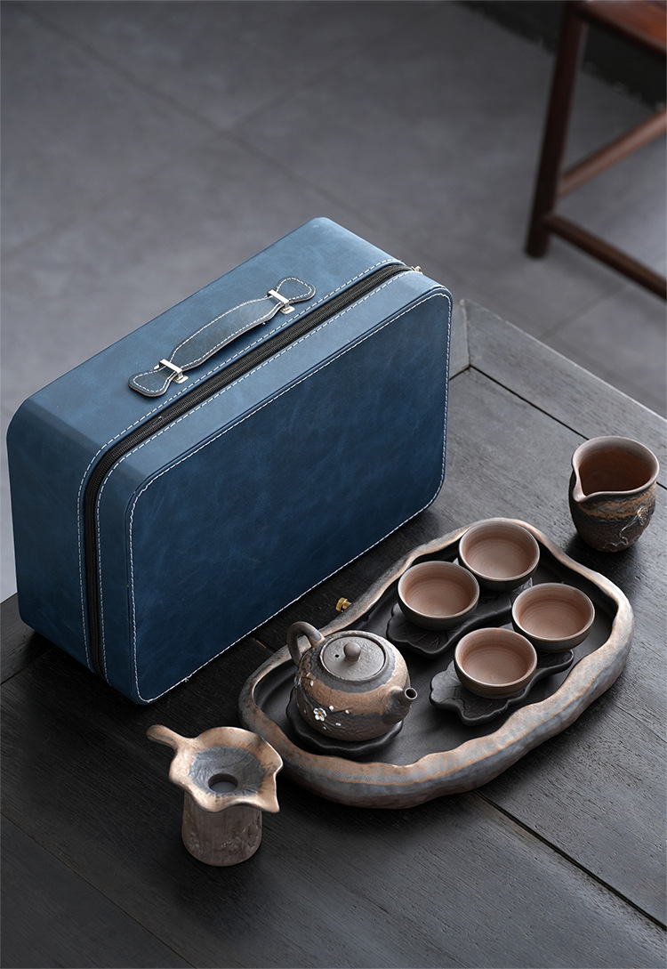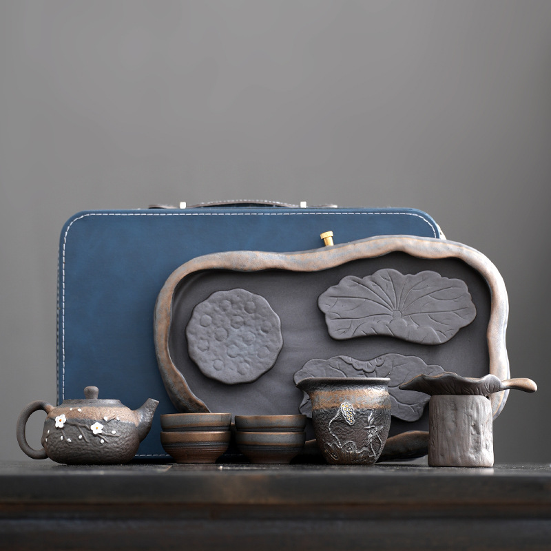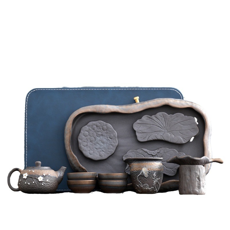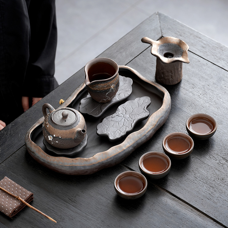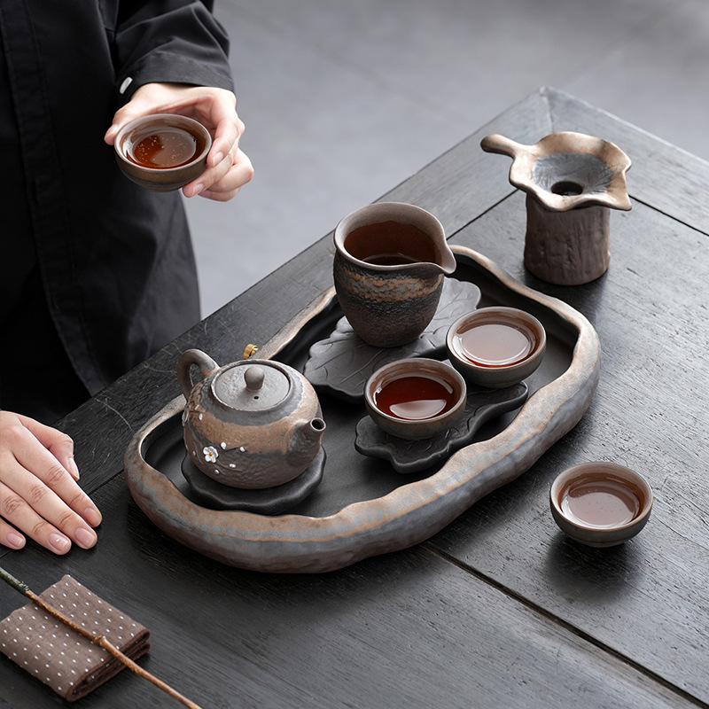 日式粗陶手工茶具套装古早烧鎏金铁釉办公室家用功夫茶具套组定制