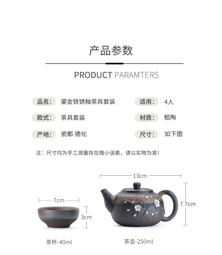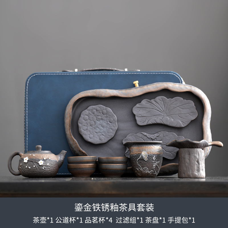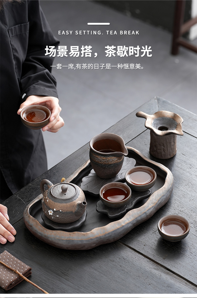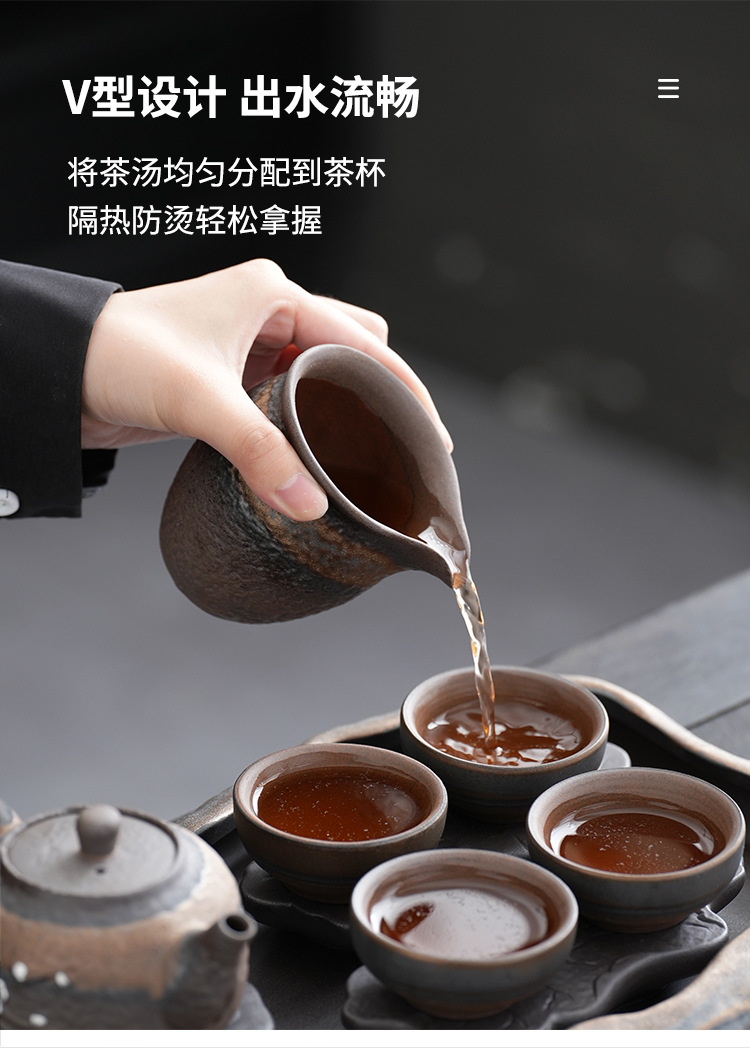 日式粗陶手工茶具套装古早烧鎏金铁釉办公室家用功夫茶具套组定制 投诉