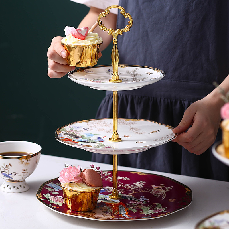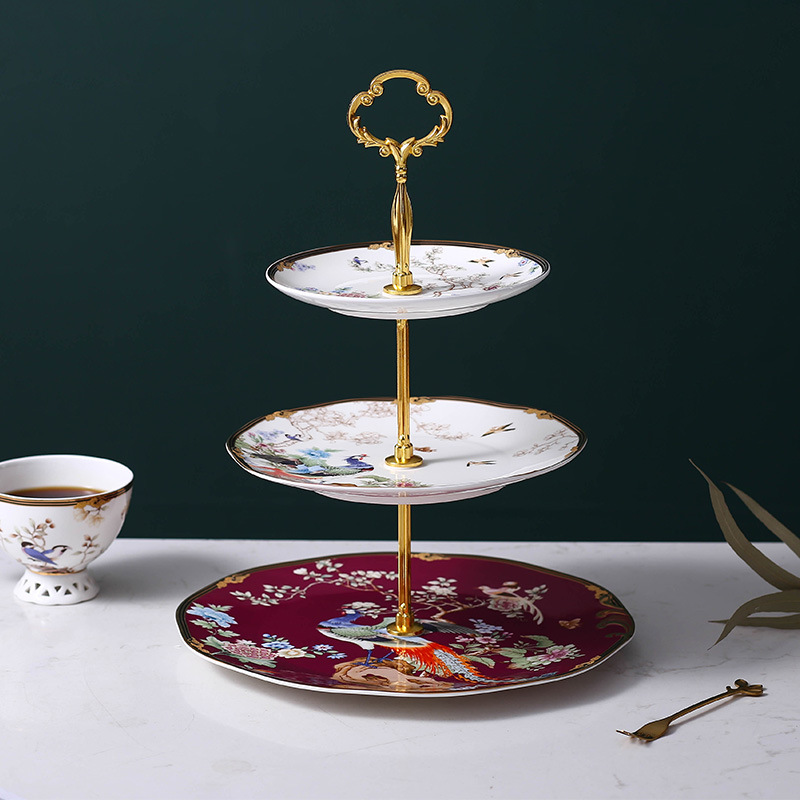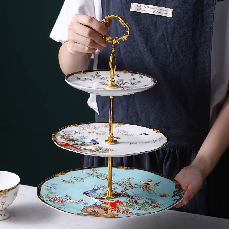 美道新中式甜品台下午茶蛋糕架子陶瓷串盘三层点心盘水果盘小奢华 投诉