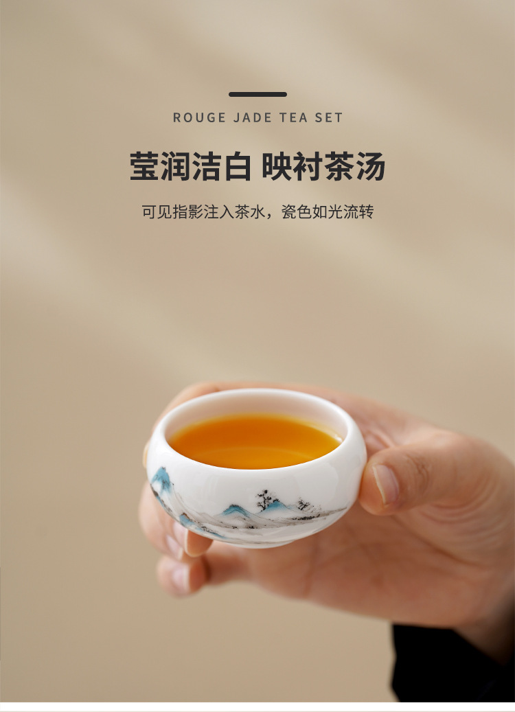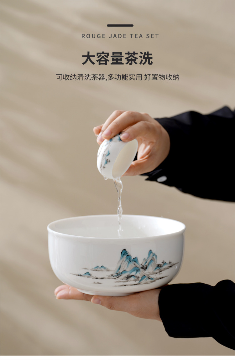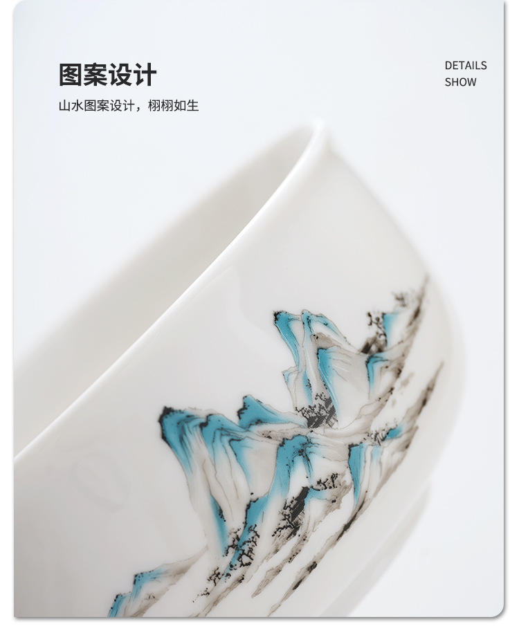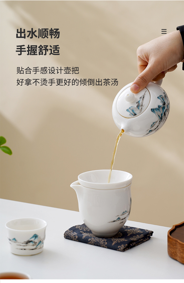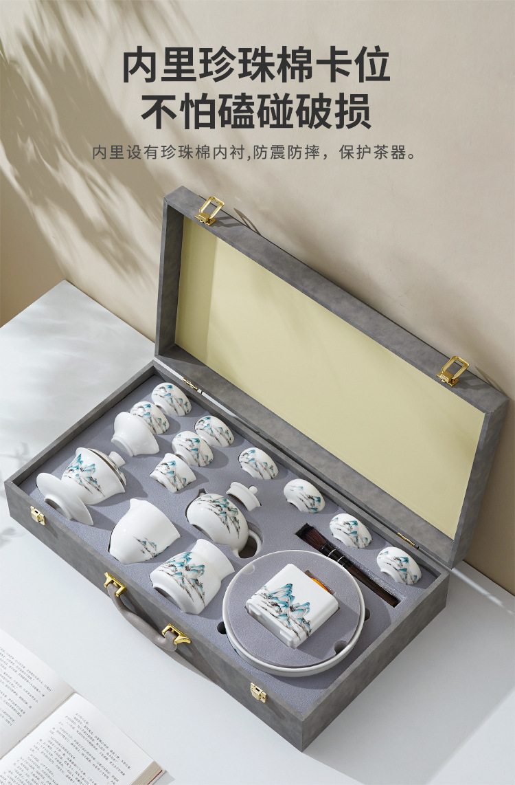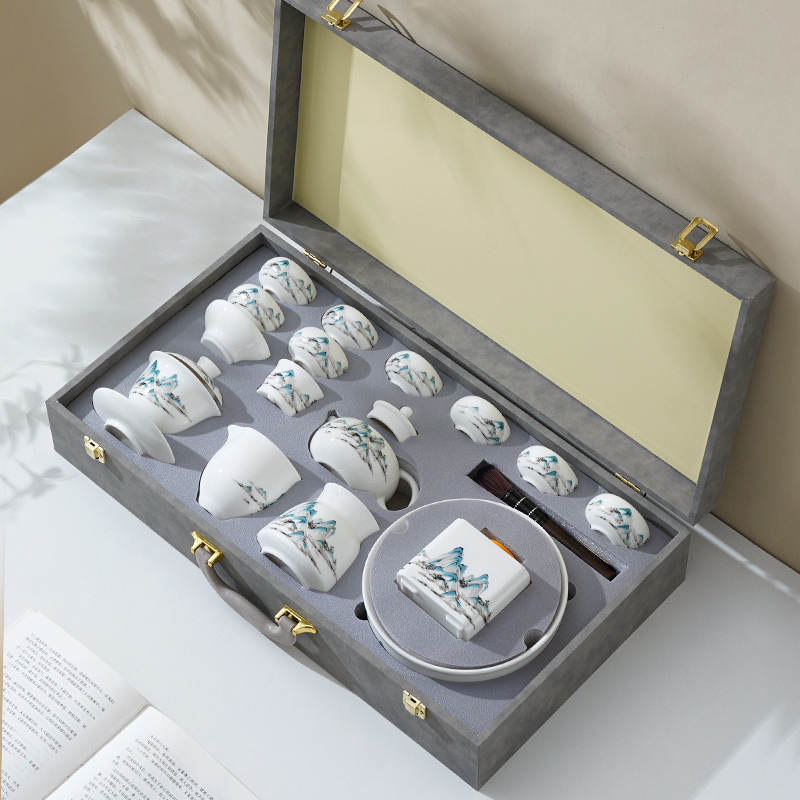 中式千里江山茶具套装羊脂玉家用高档白瓷盖碗茶壶功夫茶杯礼盒装