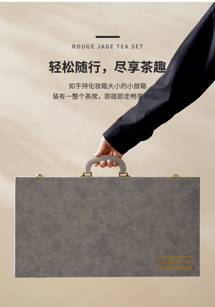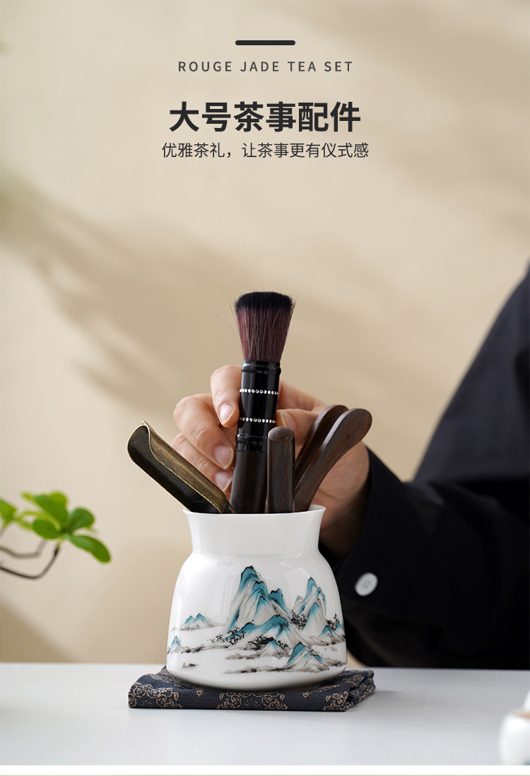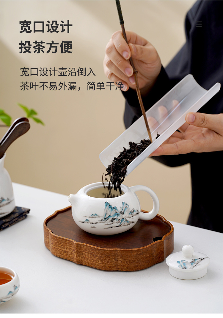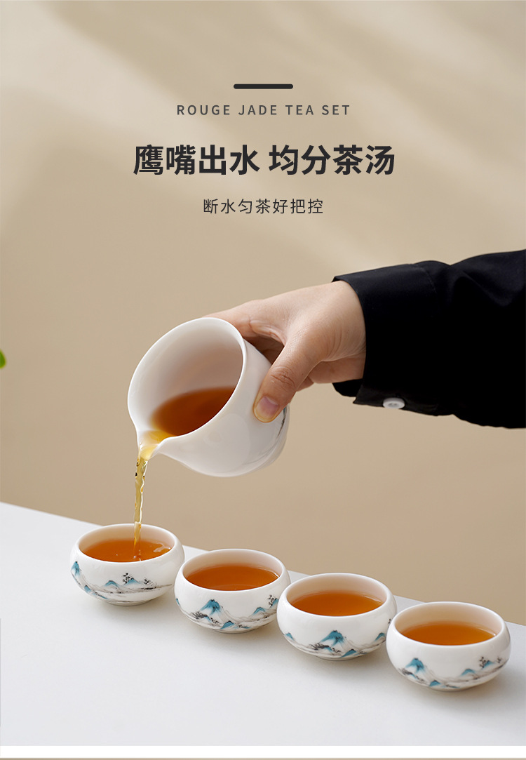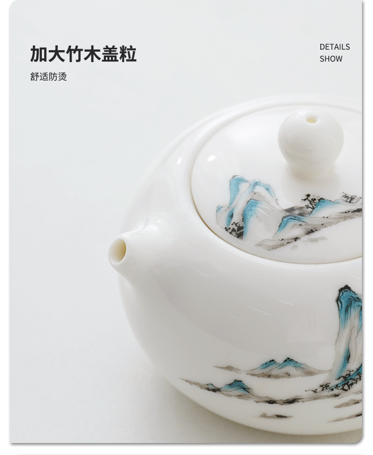 中式千里江山茶具套装羊脂玉家用高档白瓷盖碗茶壶功夫茶杯礼盒装