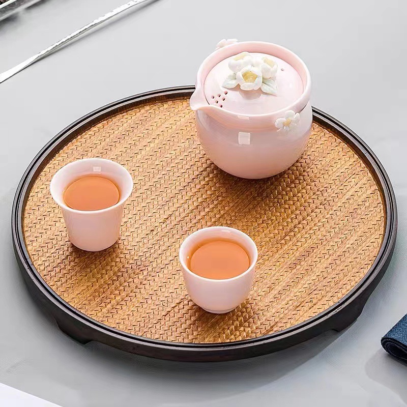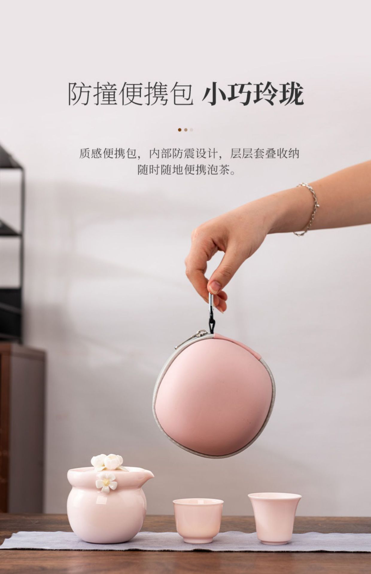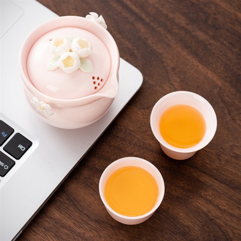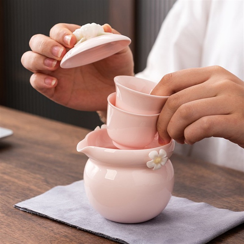 纯手工陶瓷捏花女士生粉色旅行茶具快客杯一壶二杯女性专用户外