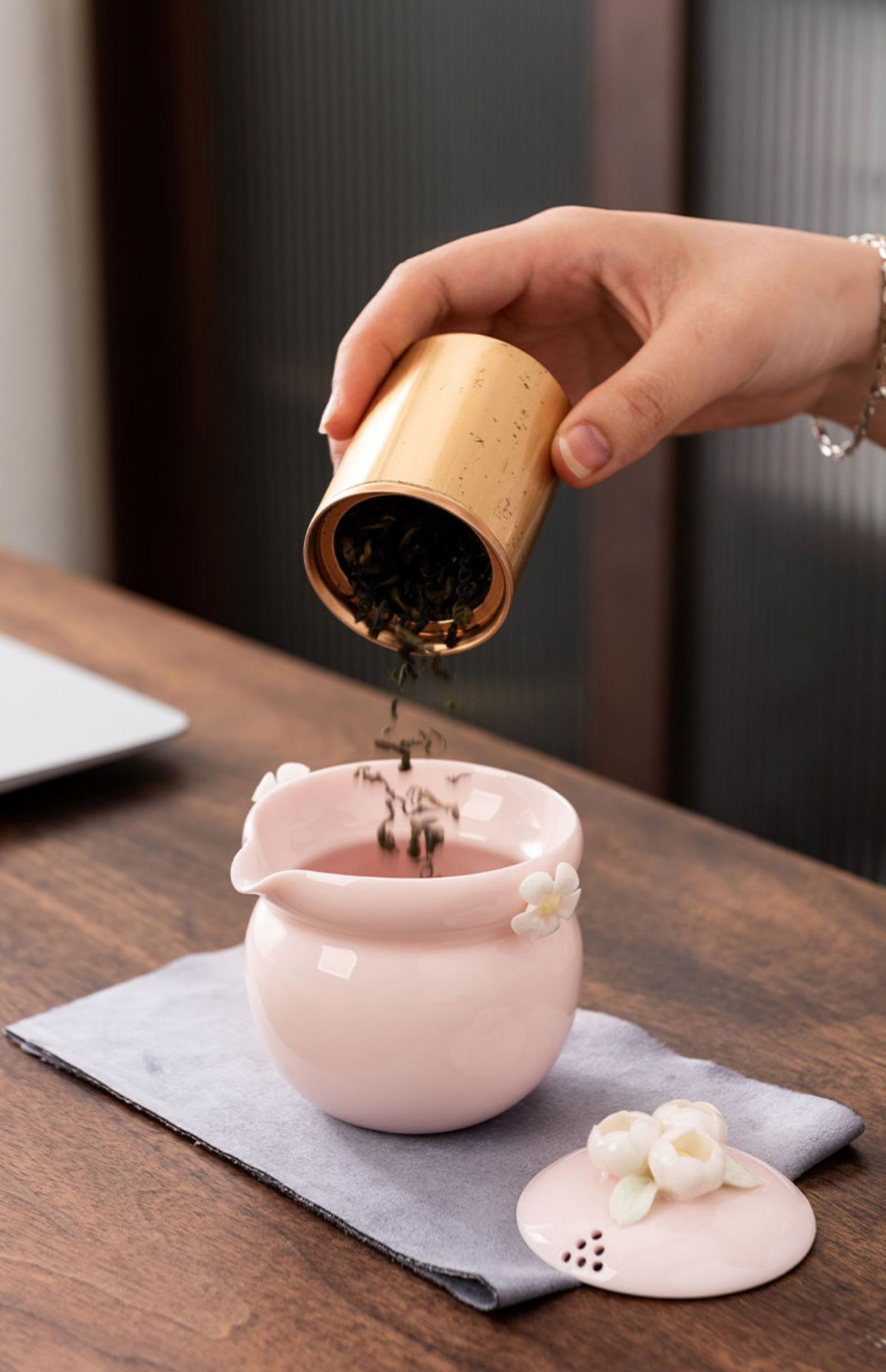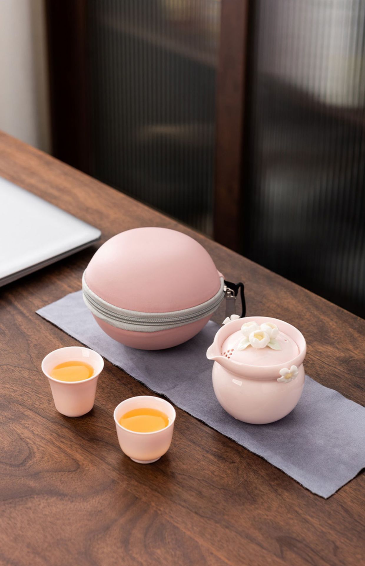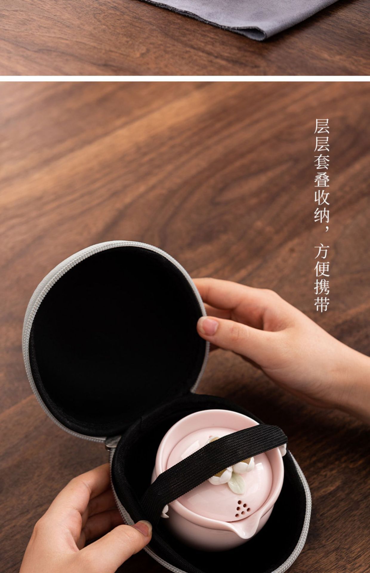 纯手工陶瓷捏花女士生粉色旅行茶具快客杯一壶二杯女性专用户外