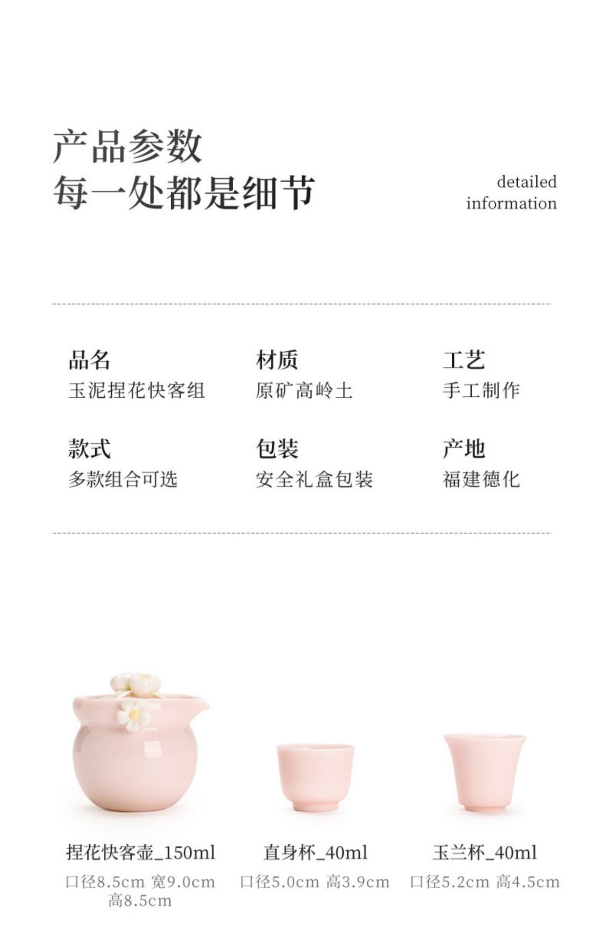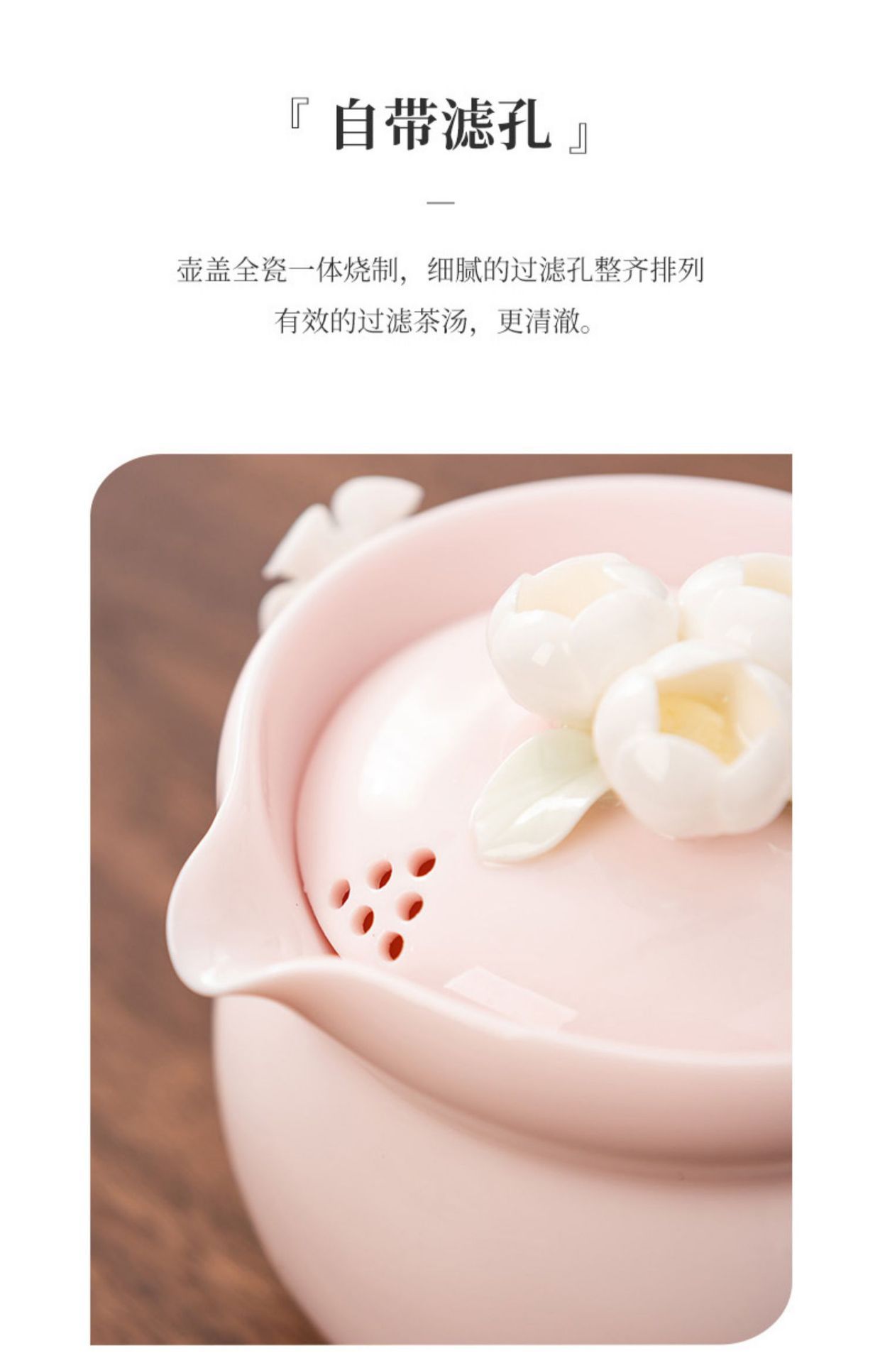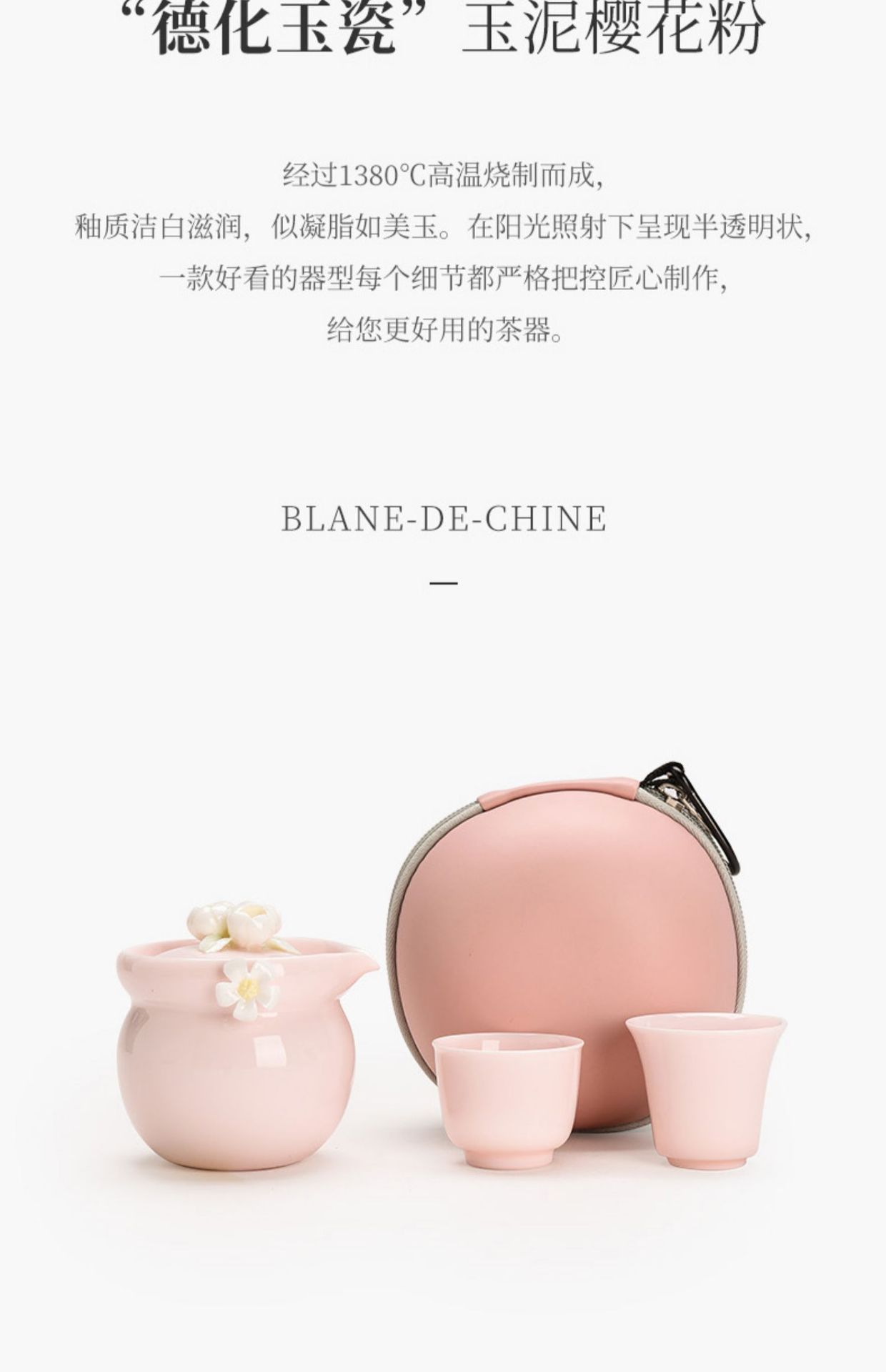 纯手工陶瓷捏花女士生粉色旅行茶具快客杯一壶二杯女性专用户外 投诉