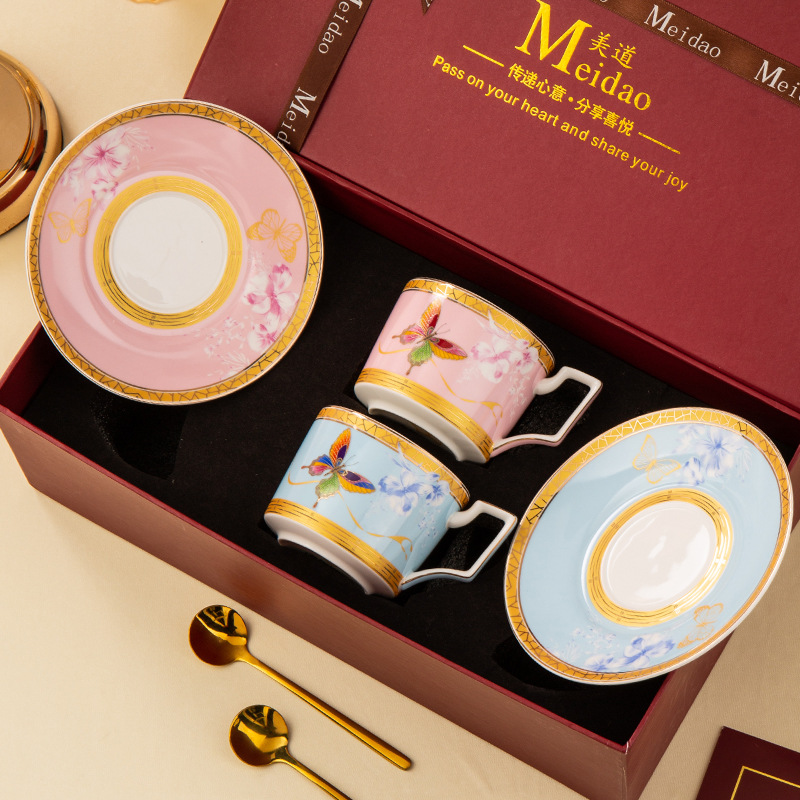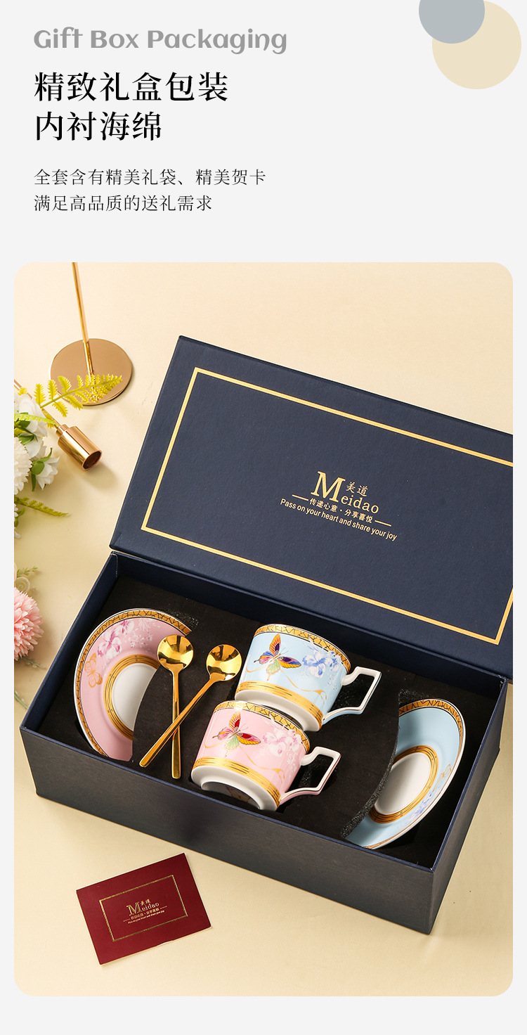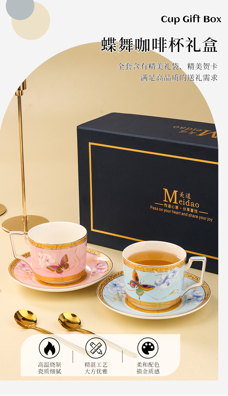 美道 蝶舞 咖啡杯高档精致下午茶茶具套装高颜值闺蜜生日新婚礼物