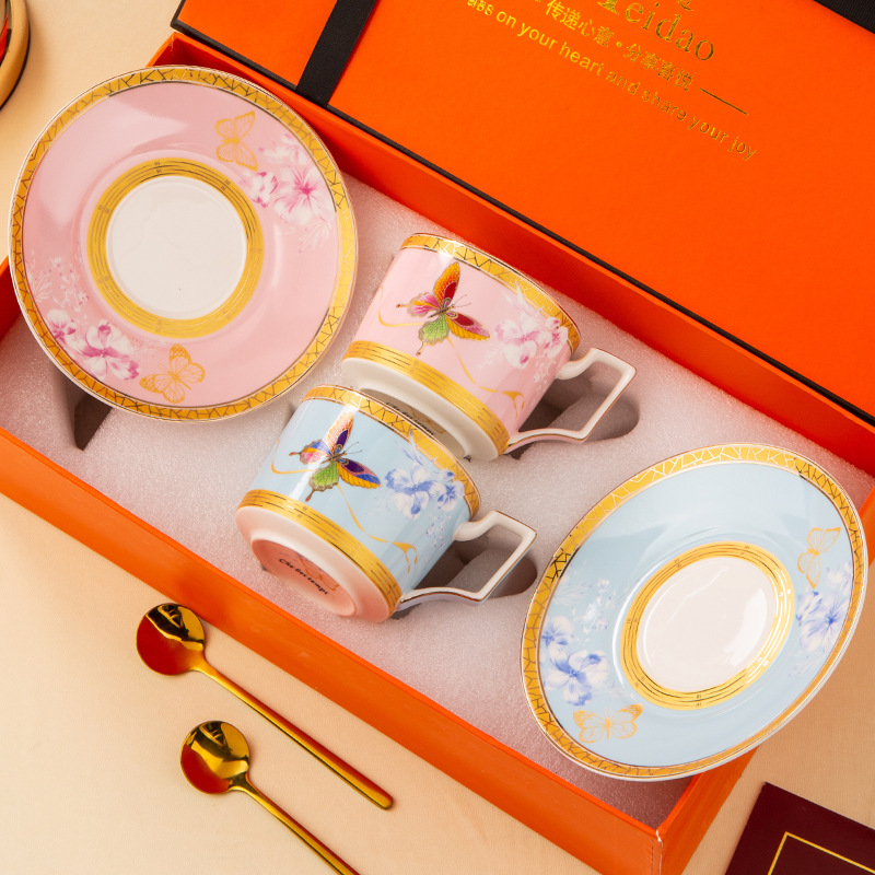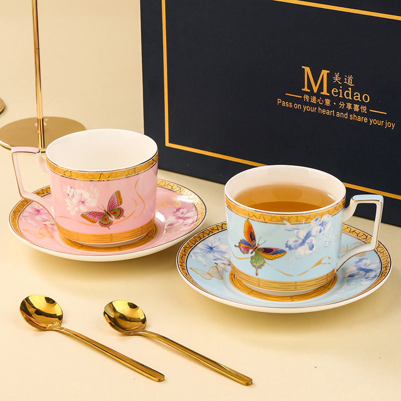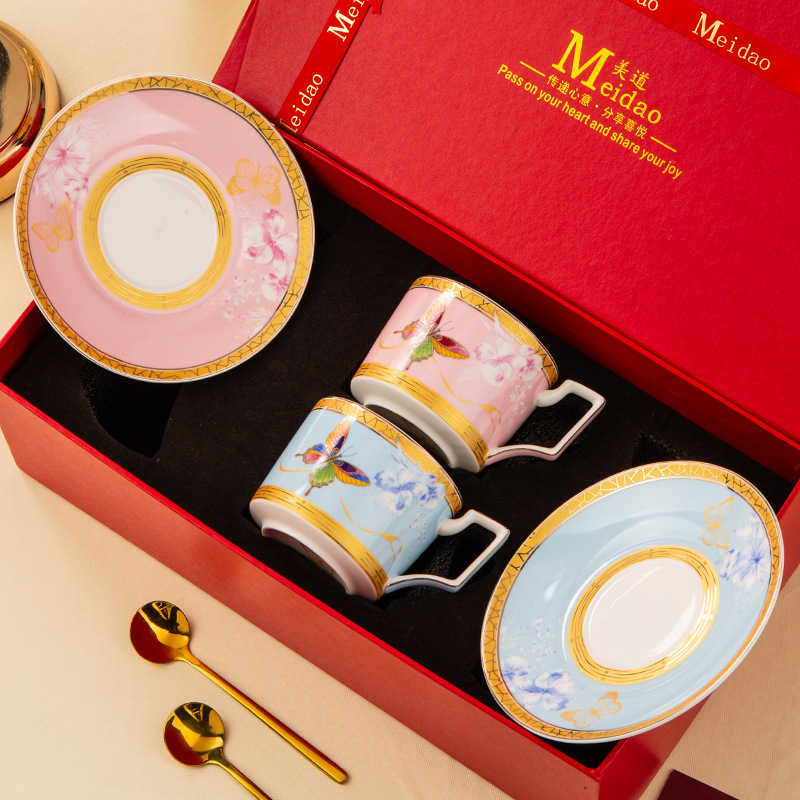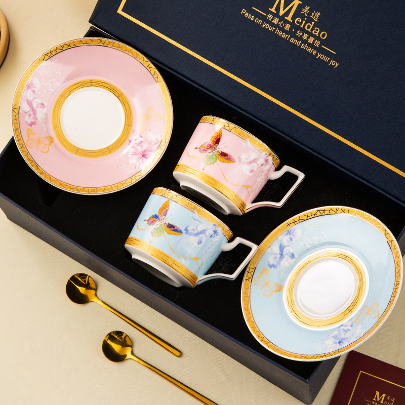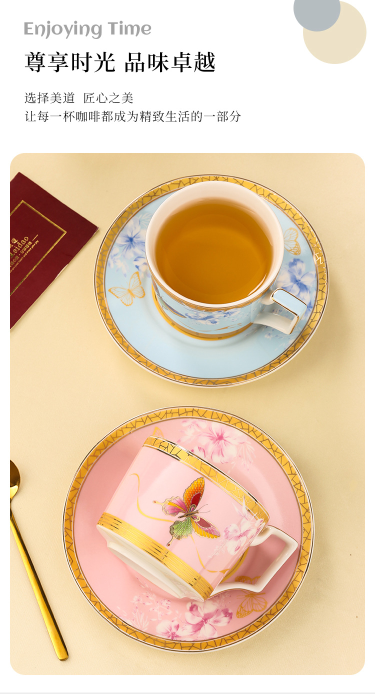 美道 蝶舞 咖啡杯高档精致下午茶茶具套装高颜值闺蜜生日新婚礼物