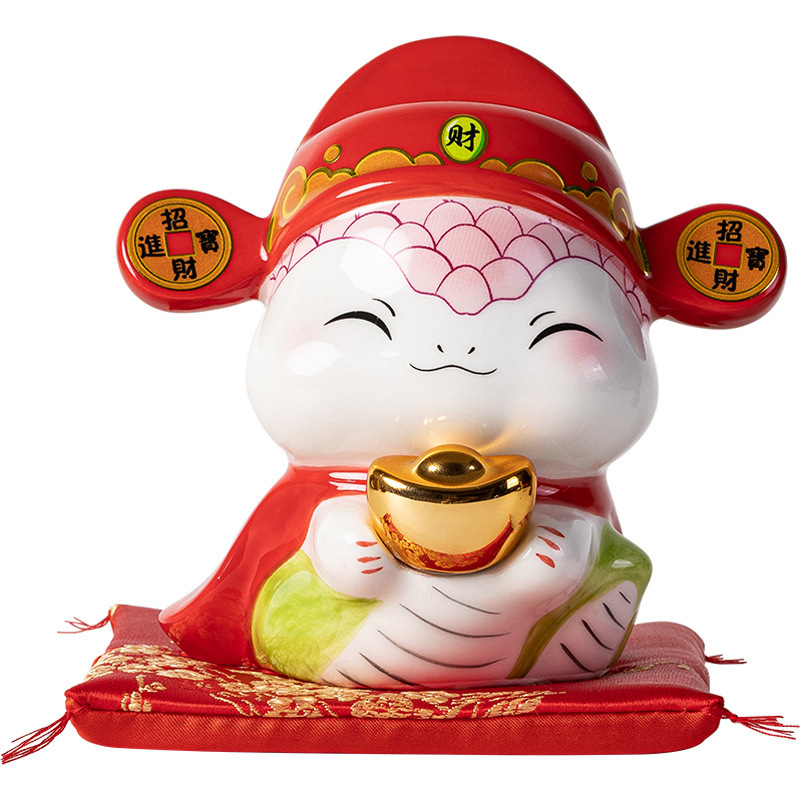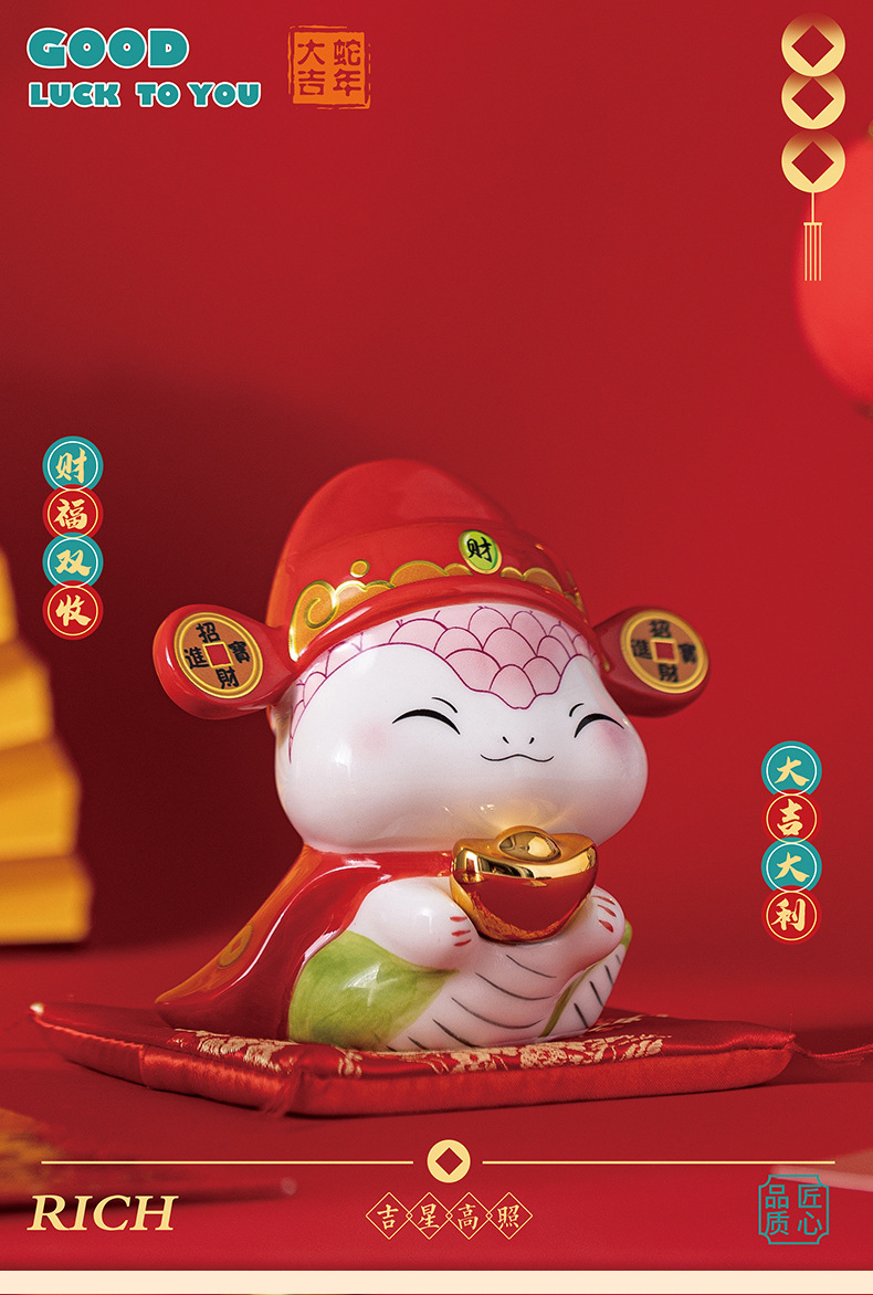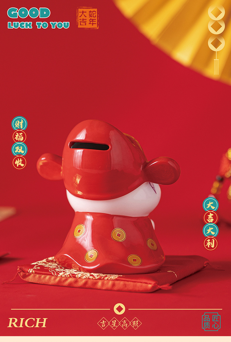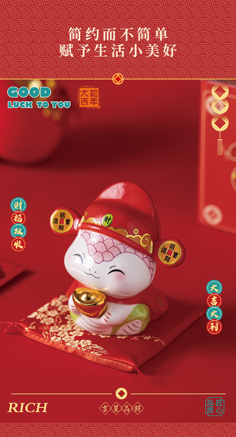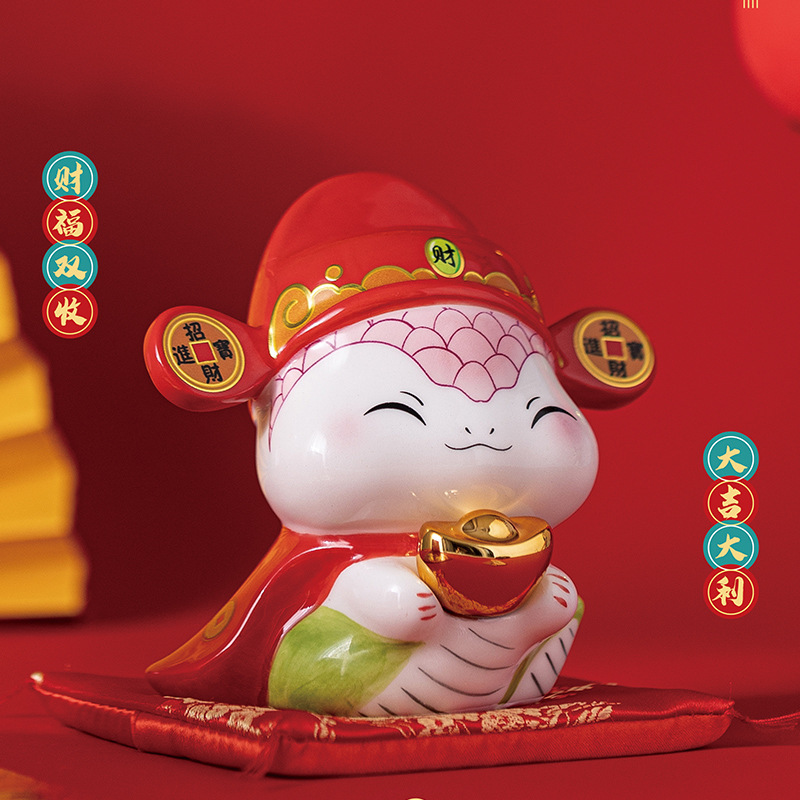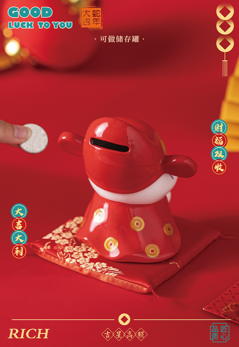 蛇年摆件福袋蛇创意陶瓷储钱罐摆件存钱罐收银台店铺开业家居礼品