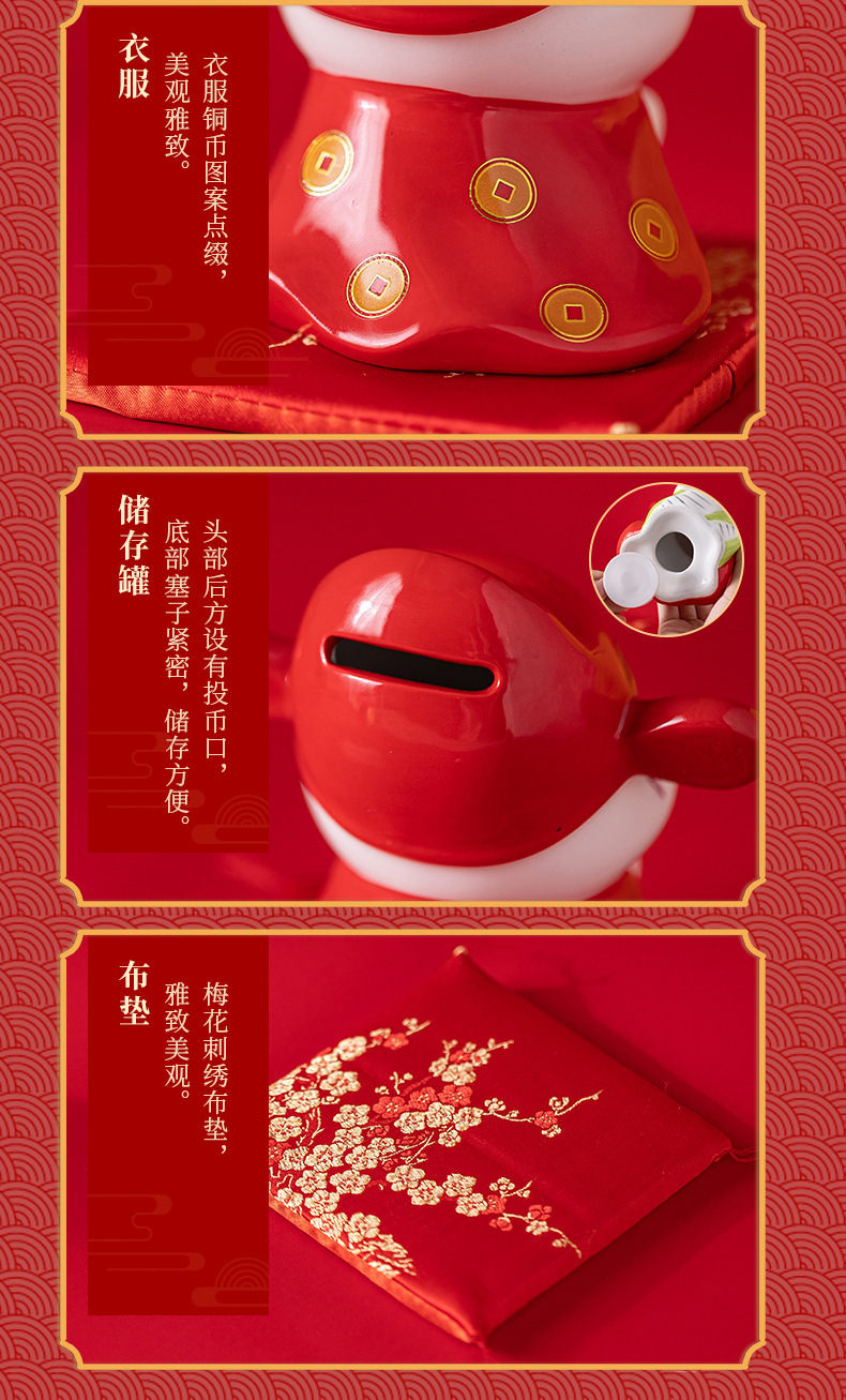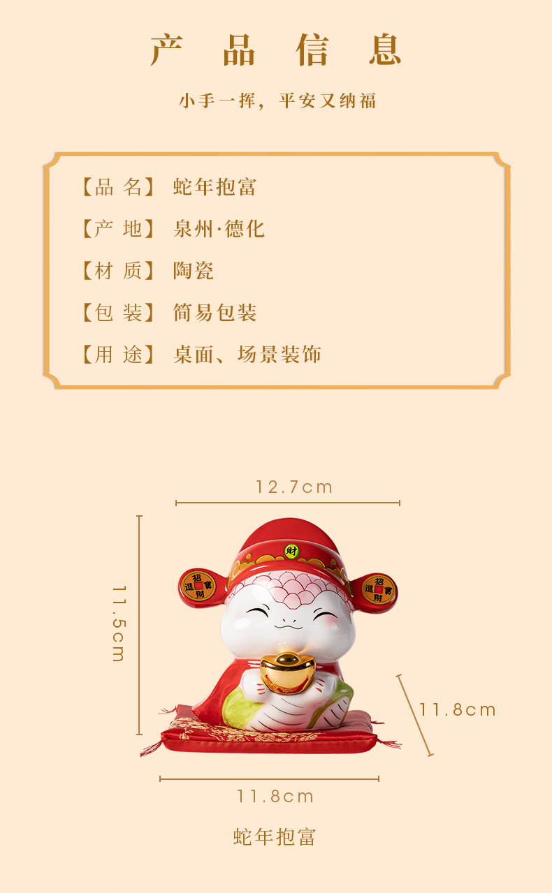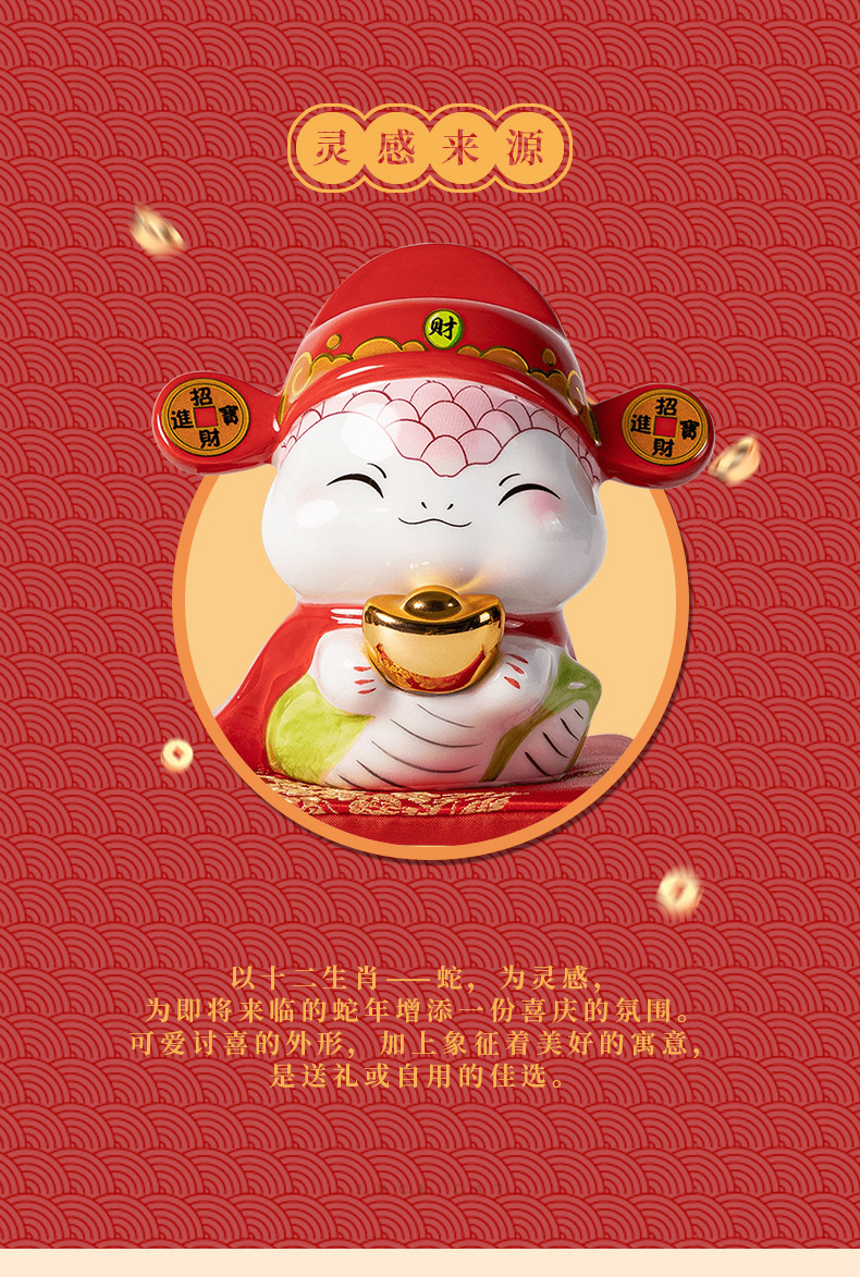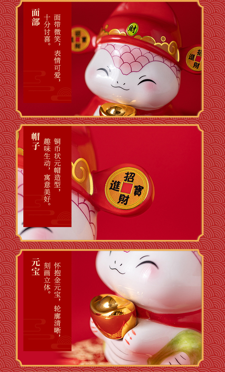 蛇年摆件福袋蛇创意陶瓷储钱罐摆件存钱罐收银台店铺开业家居礼品 投诉