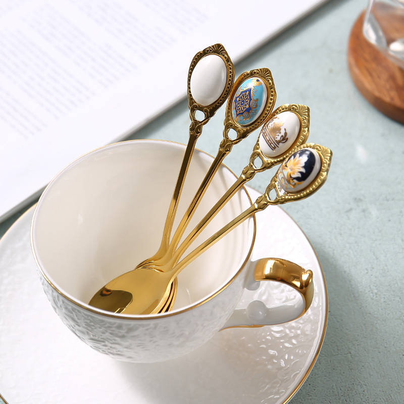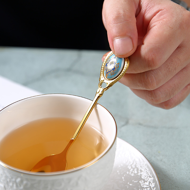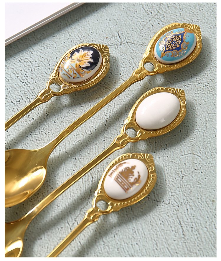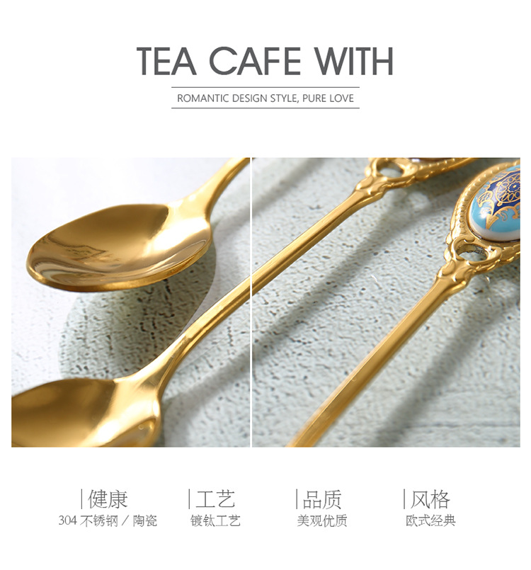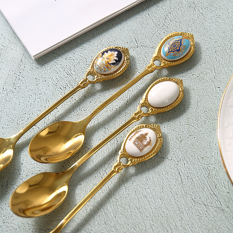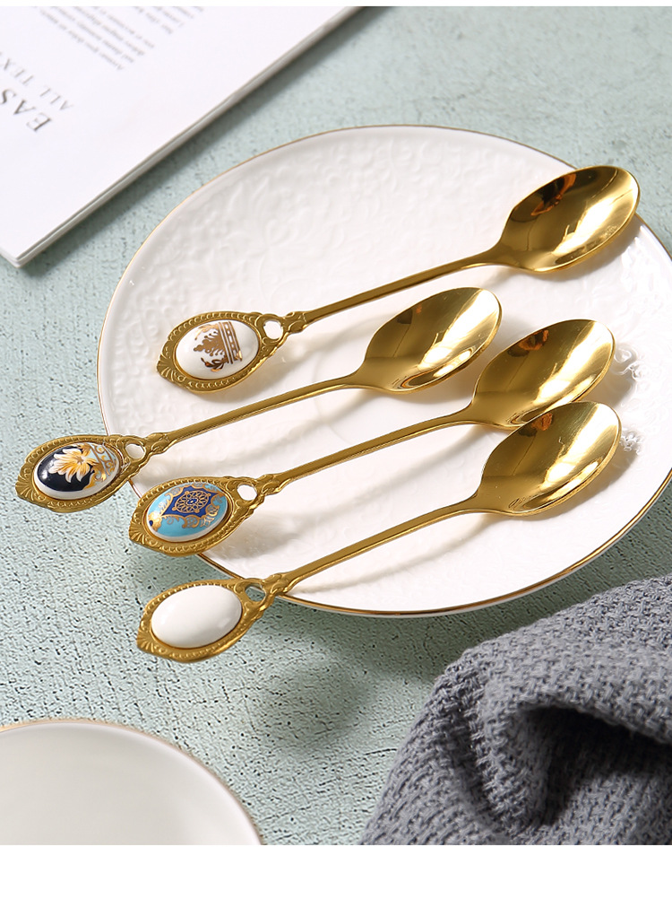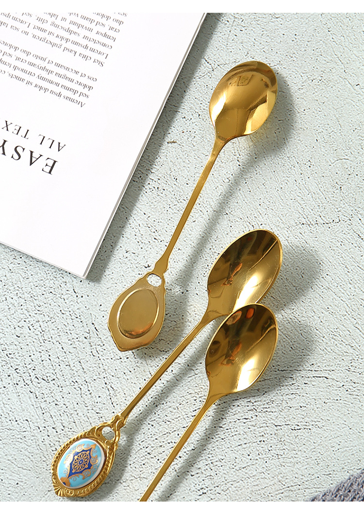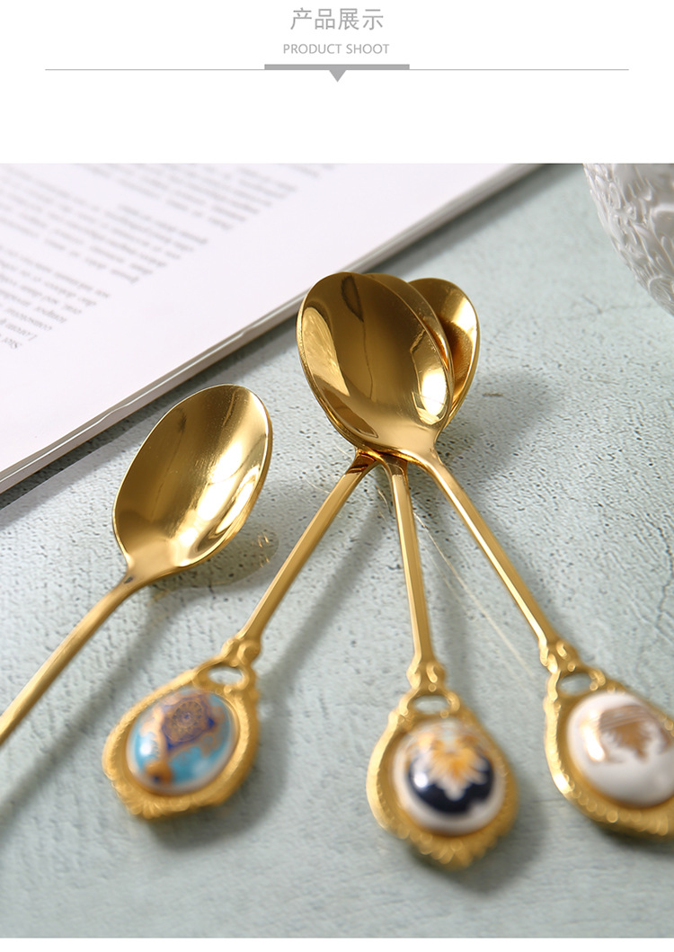 高档欧式复古不锈钢金色甜品小奢华咖啡勺小勺子甜品奶茶小汤匙