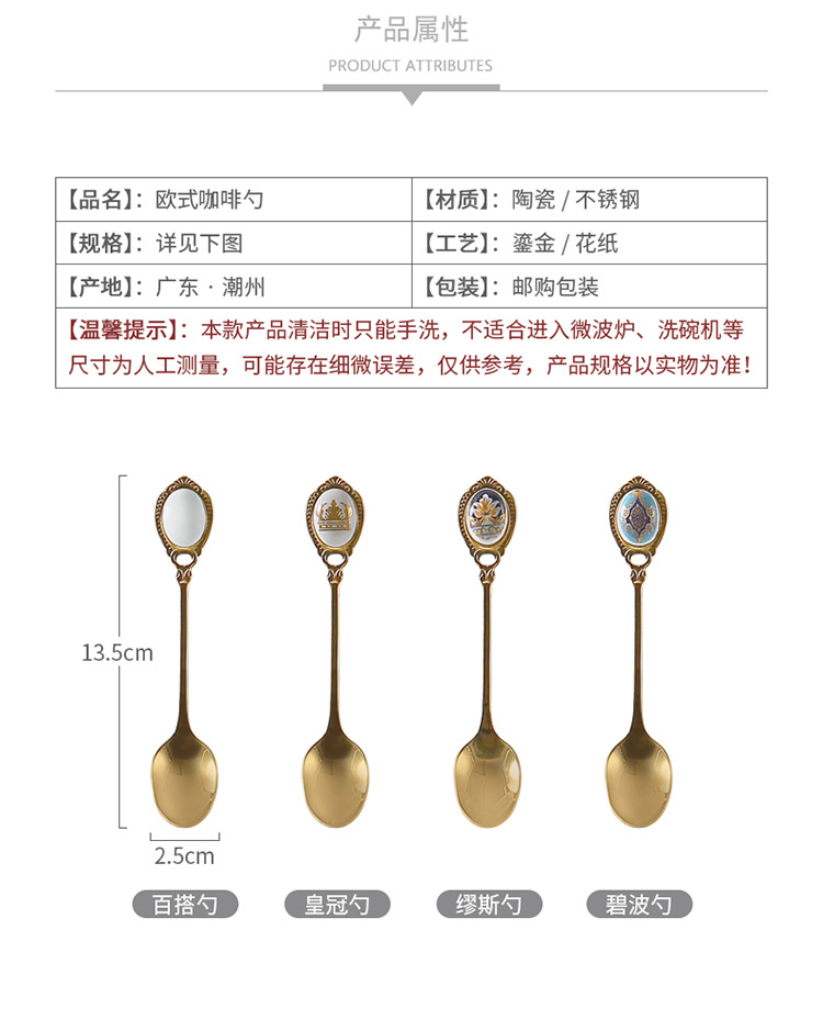 高档欧式复古不锈钢金色甜品小奢华咖啡勺小勺子甜品奶茶小汤匙 投诉