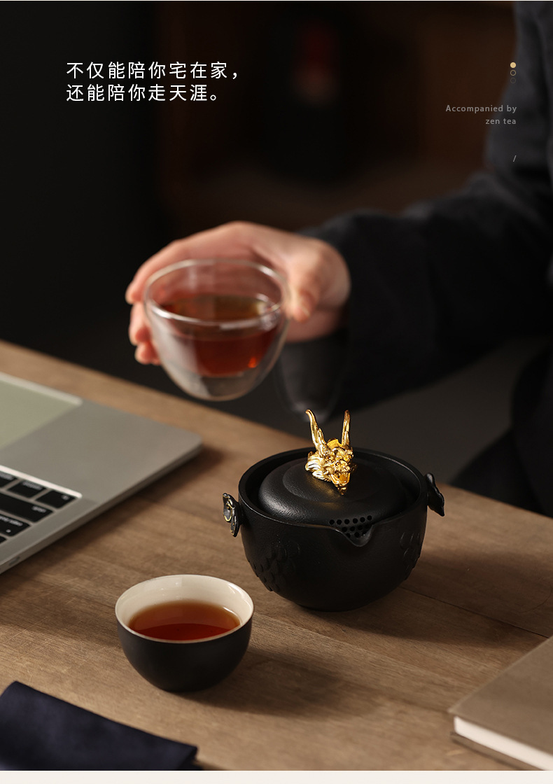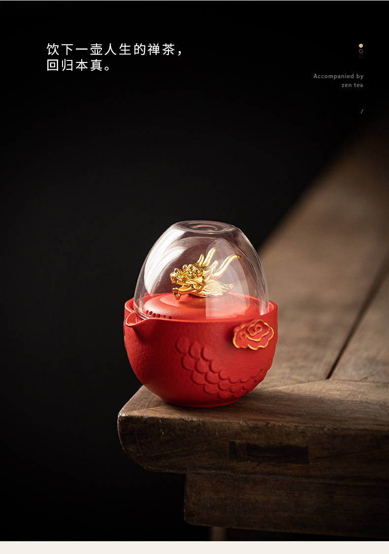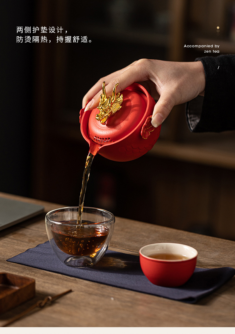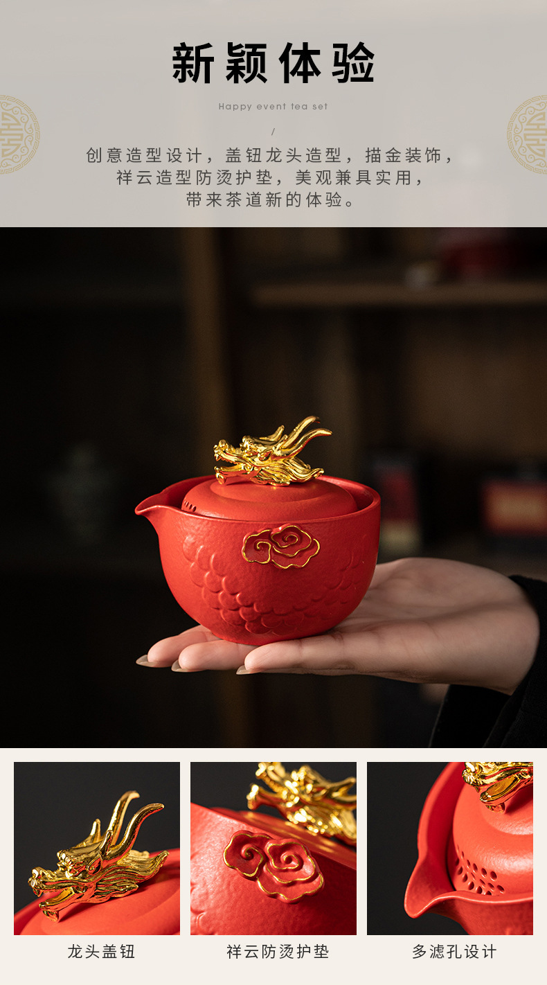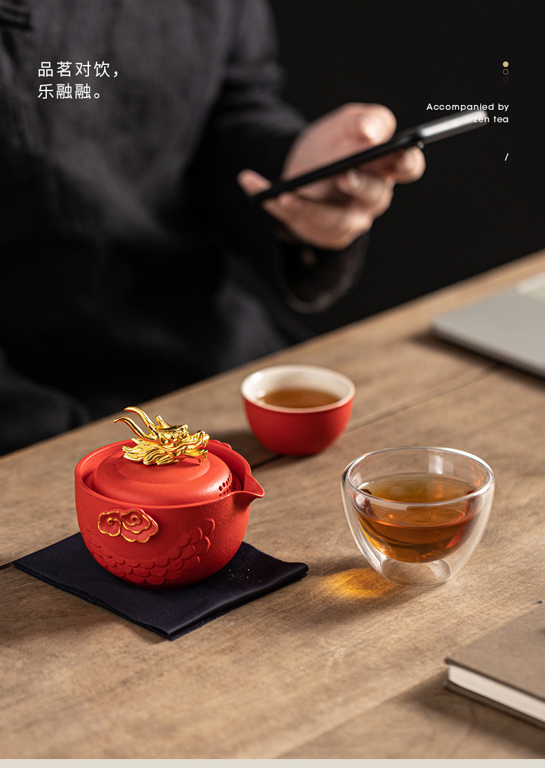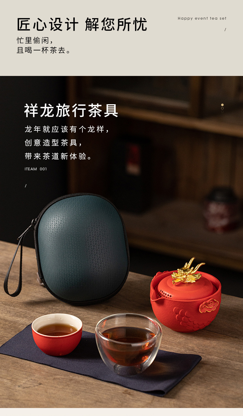 龙年快客杯旅行茶具套装一壶二杯收纳手抓壶便捷户外文创商务礼品