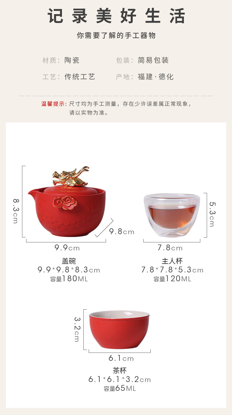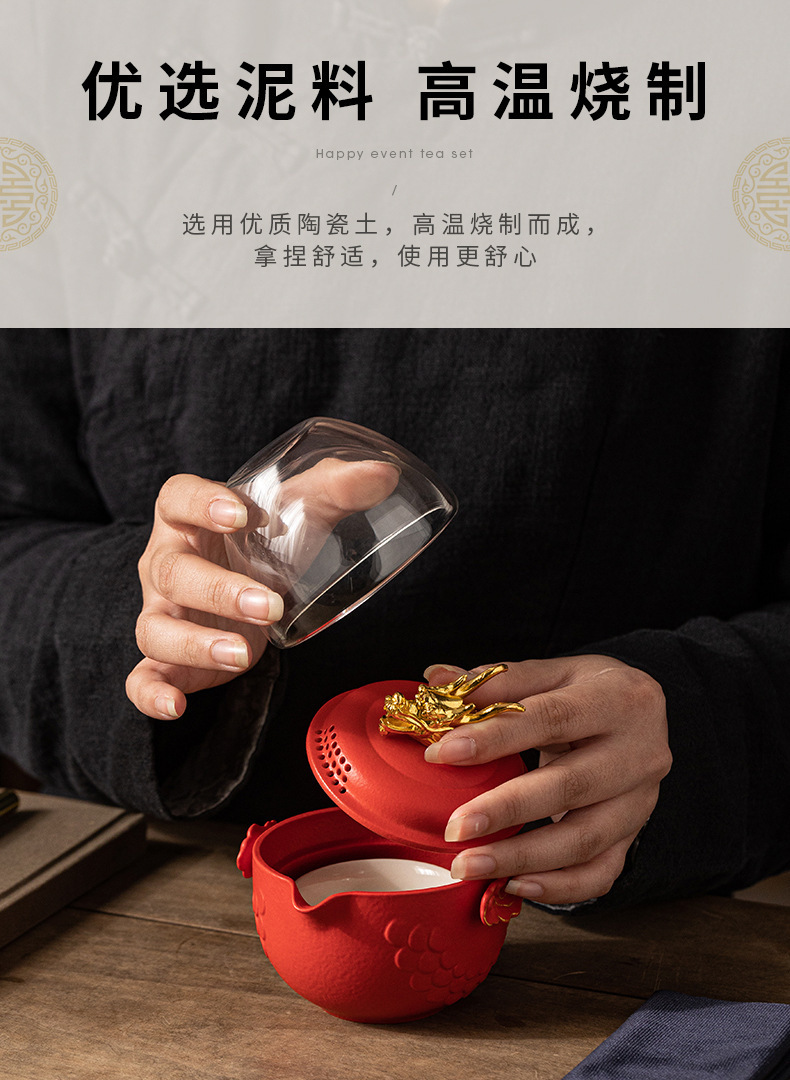龙年快客杯旅行茶具套装一壶二杯收纳手抓壶便捷户外文创商务礼品 投诉