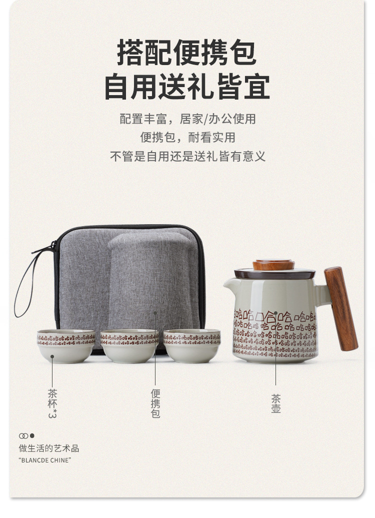 文创旅行茶具陶瓷可爱伴手礼创意刻字礼物便携式快客杯一壶三杯 投诉