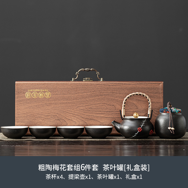 粗陶梅花套组一壶四杯+茶叶罐[礼盒装] ¥13200 2087件可售