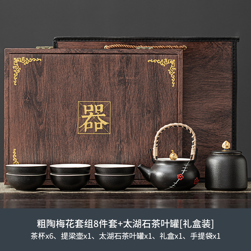 粗陶梅花套组一壶六杯+太湖石茶叶罐[礼盒装] ¥14700 2198件可售