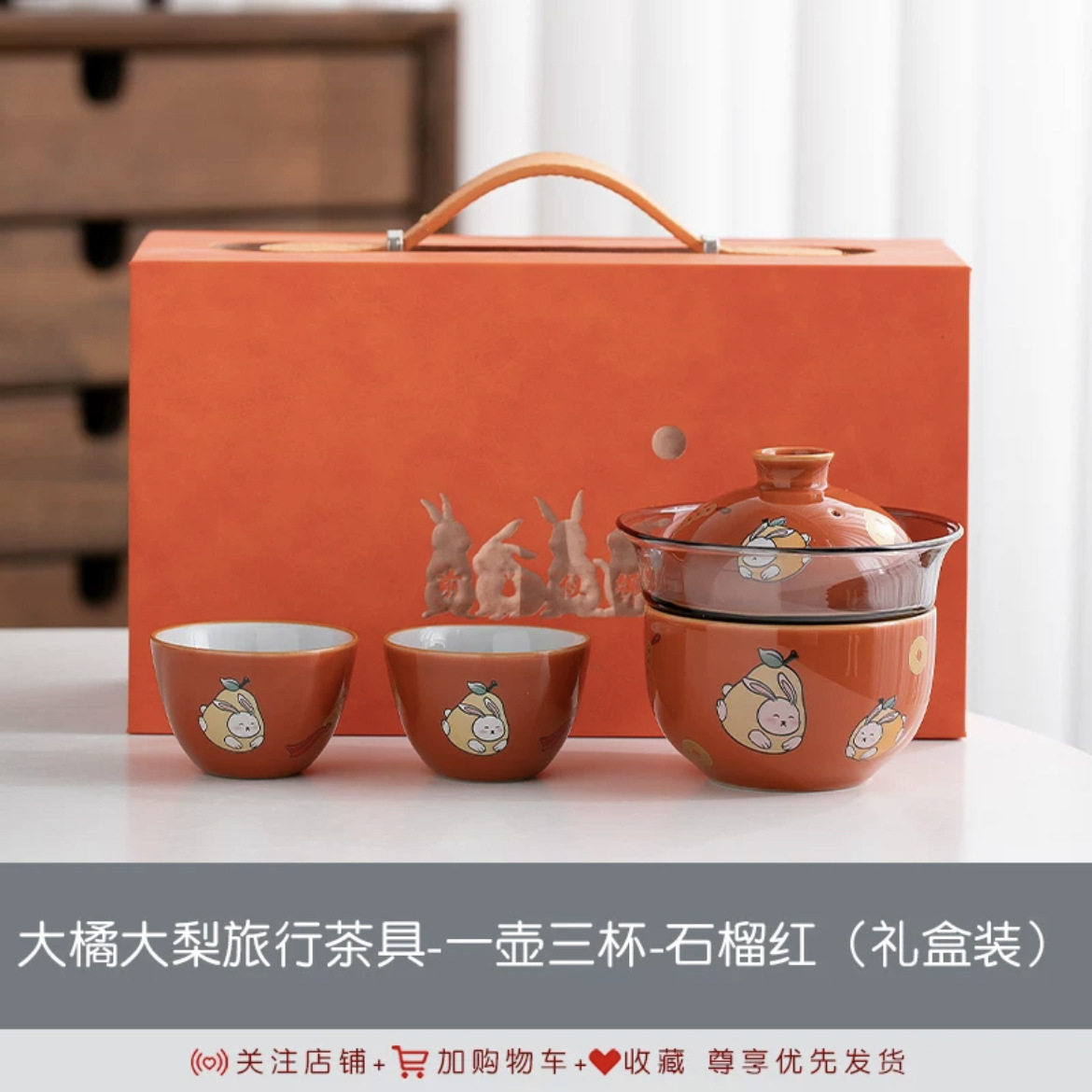 大橘大梨旅行茶具一壶三杯-石榴红(礼盒装) ¥10200 996套可售