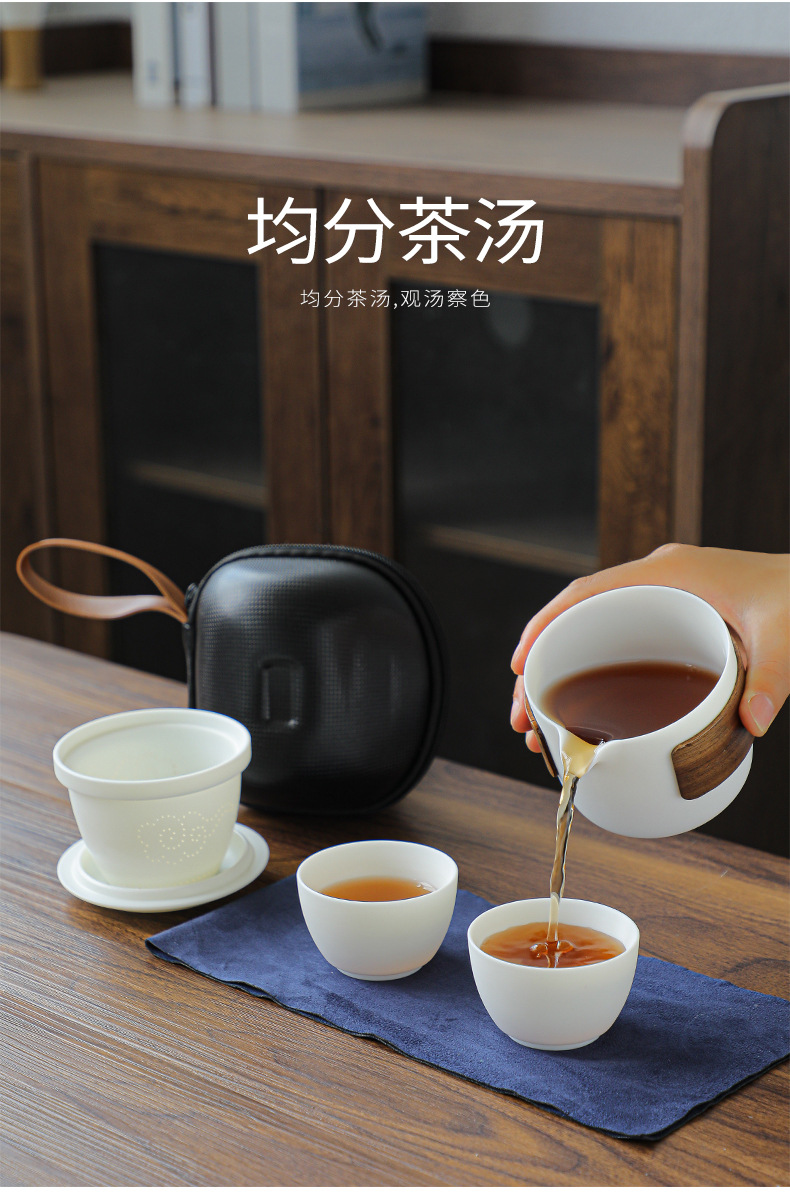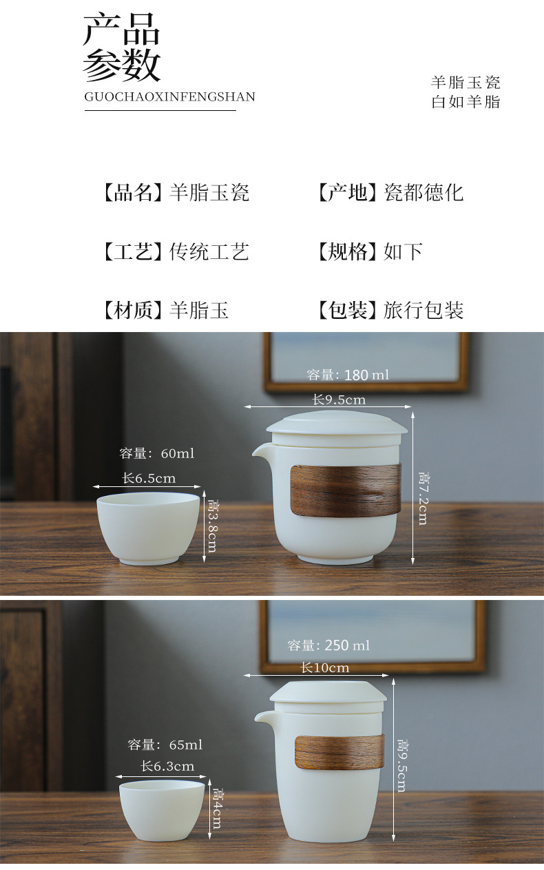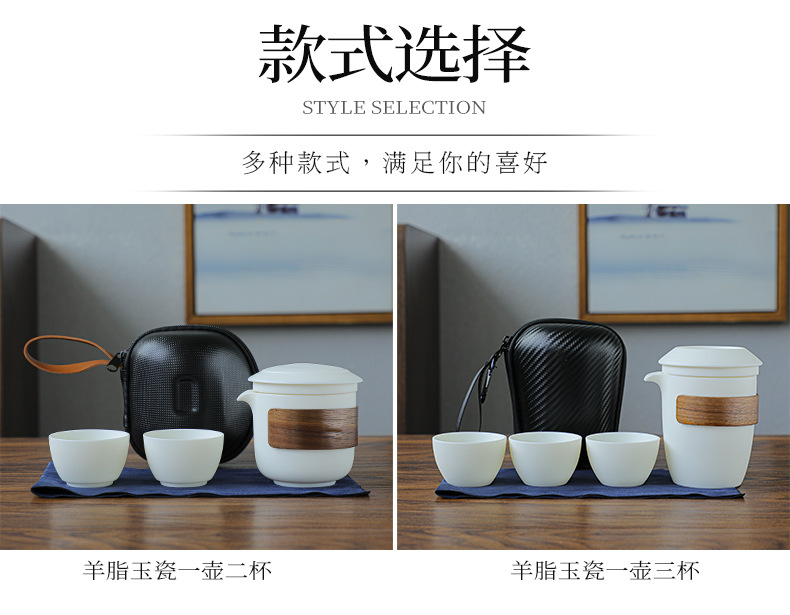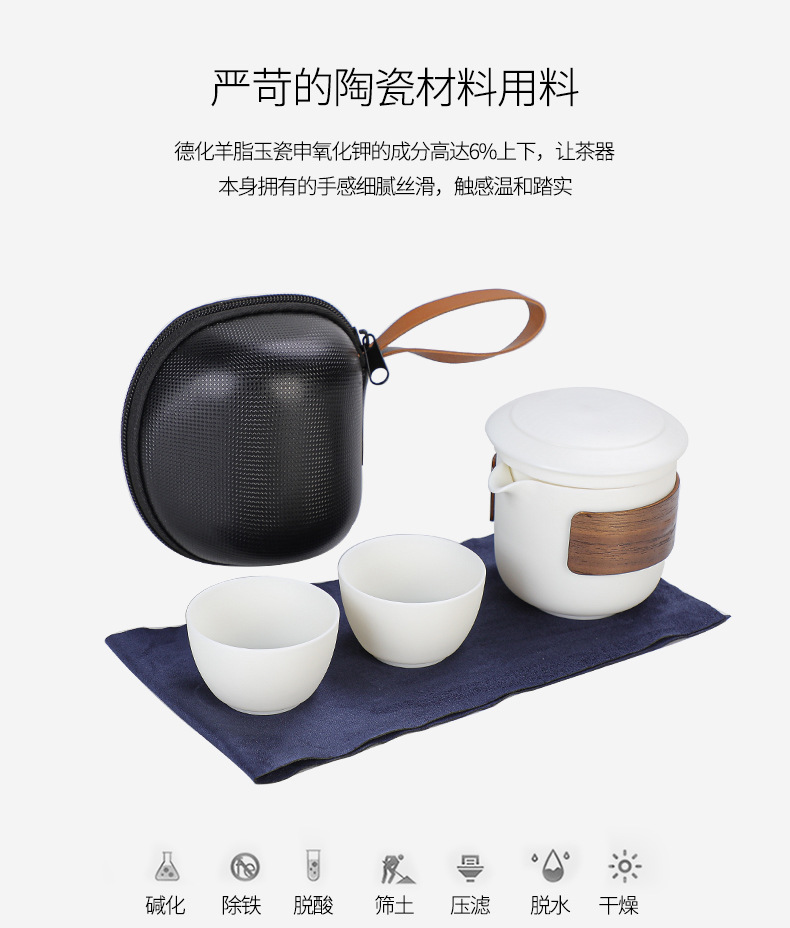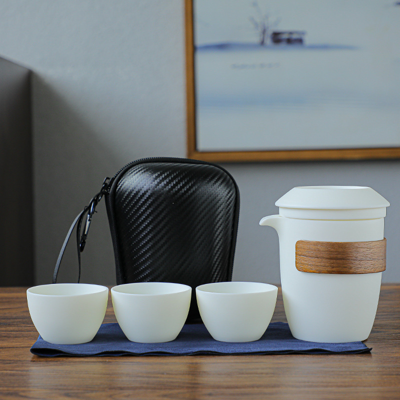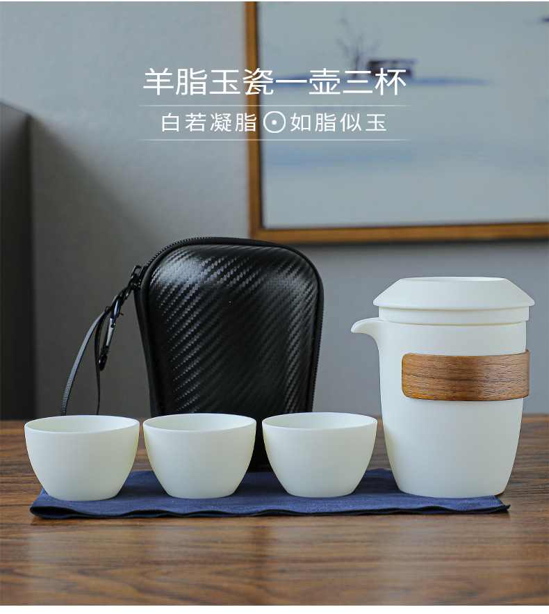 羊脂玉瓷防烫便携式旅行茶具小套装泡茶壶茶杯快客杯一壶二杯礼品