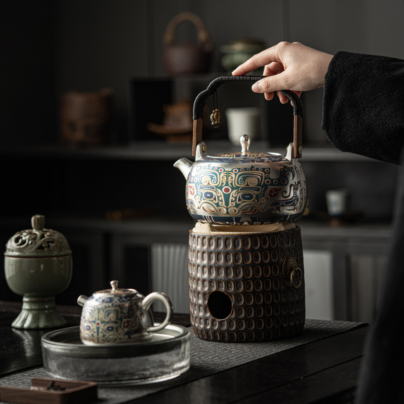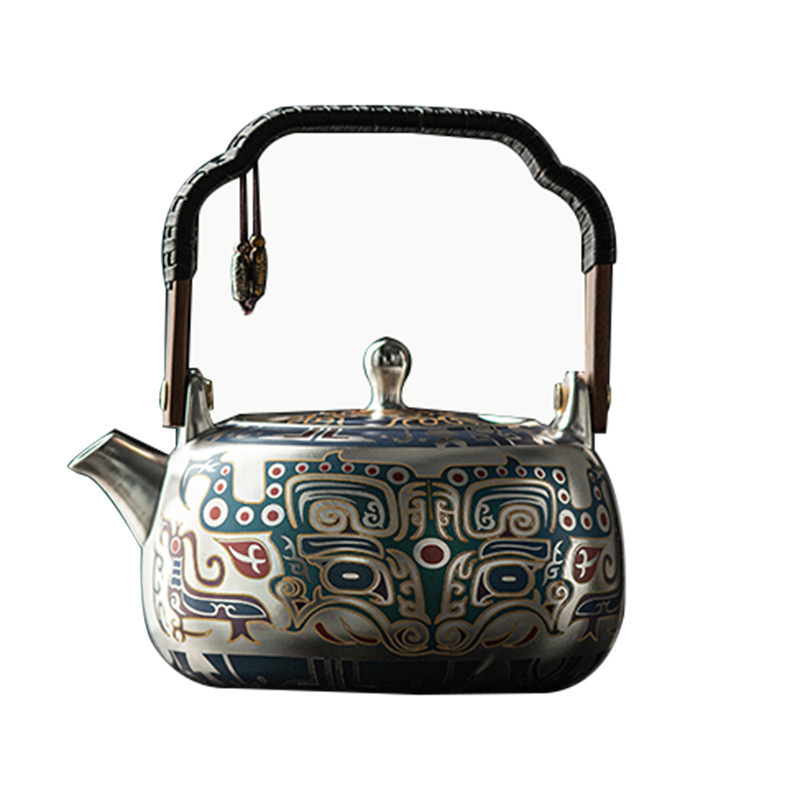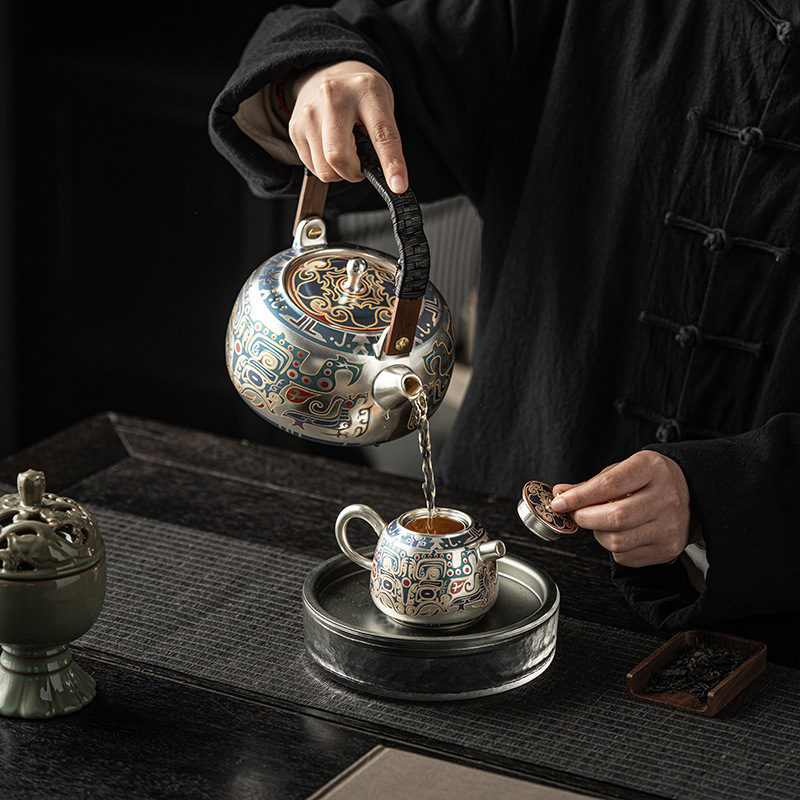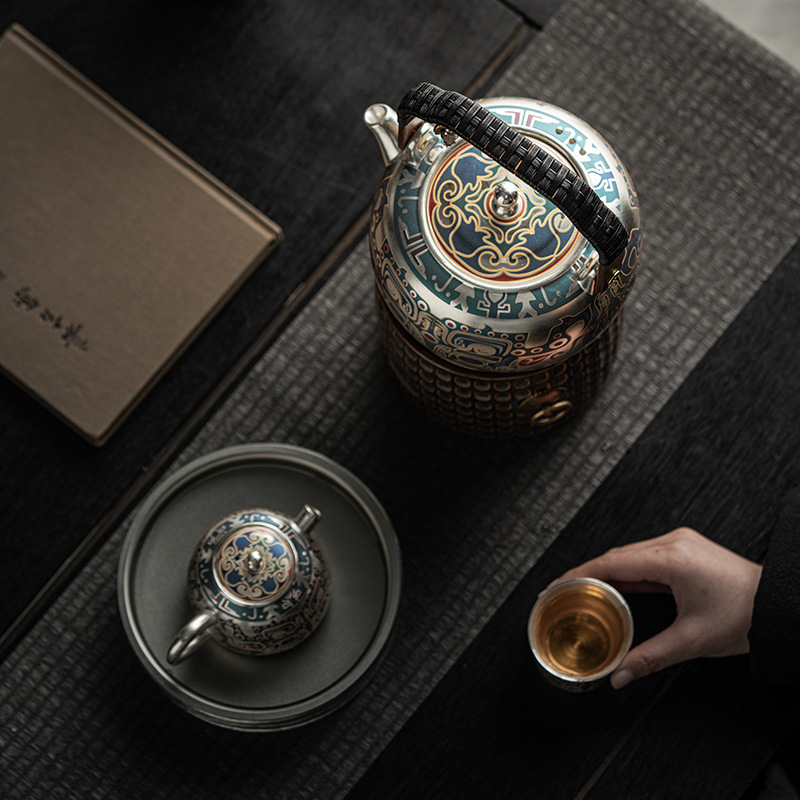 郑文强敦煌干烧银壶手工满鎏家用煮茶壶围炉提梁壶功夫茶具礼盒装