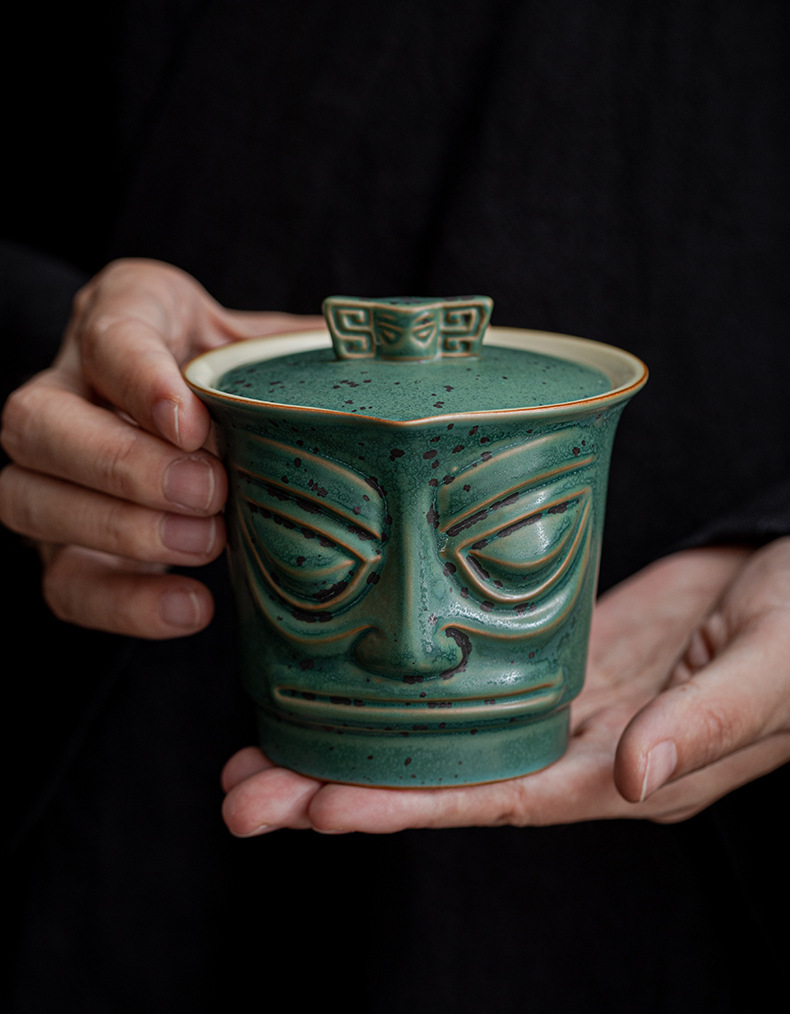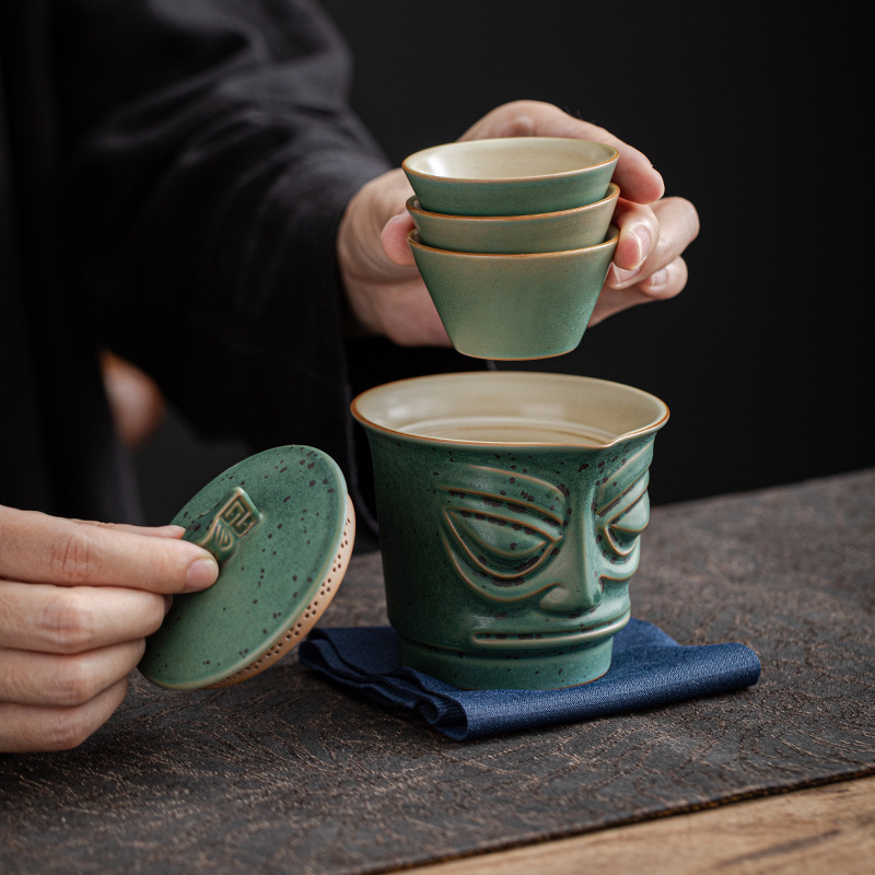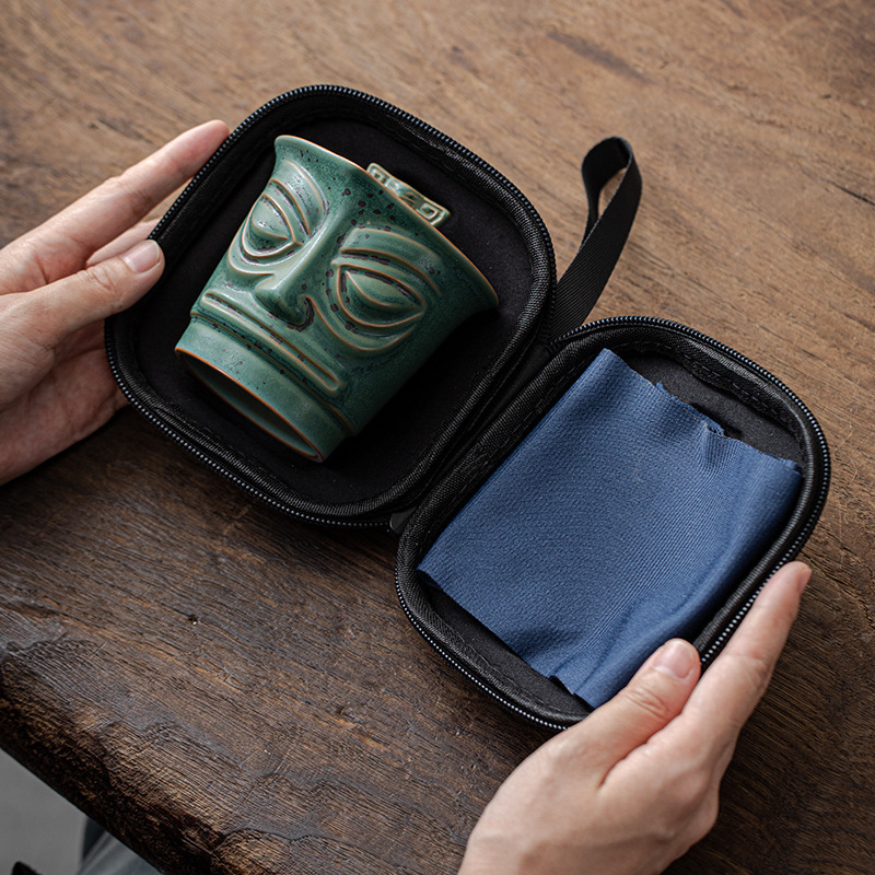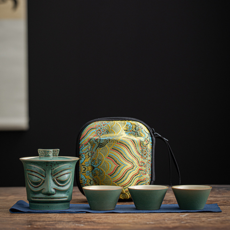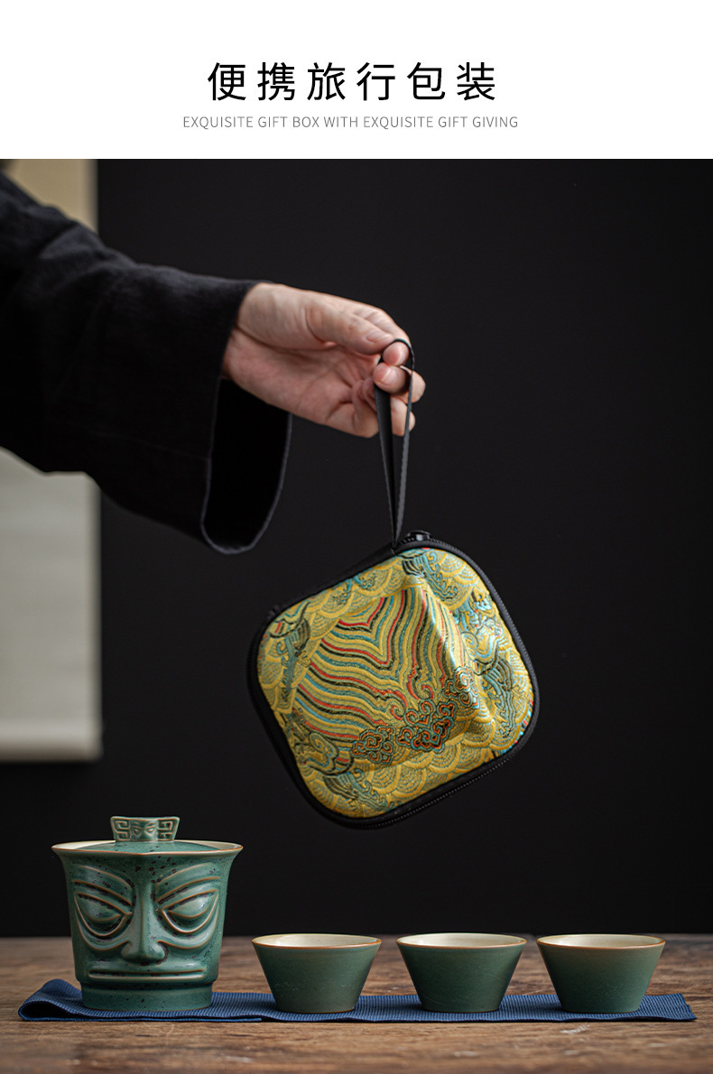 复古三星堆文创便捷式快客杯户外泡茶壶活动礼品LOGO旅行茶具套装