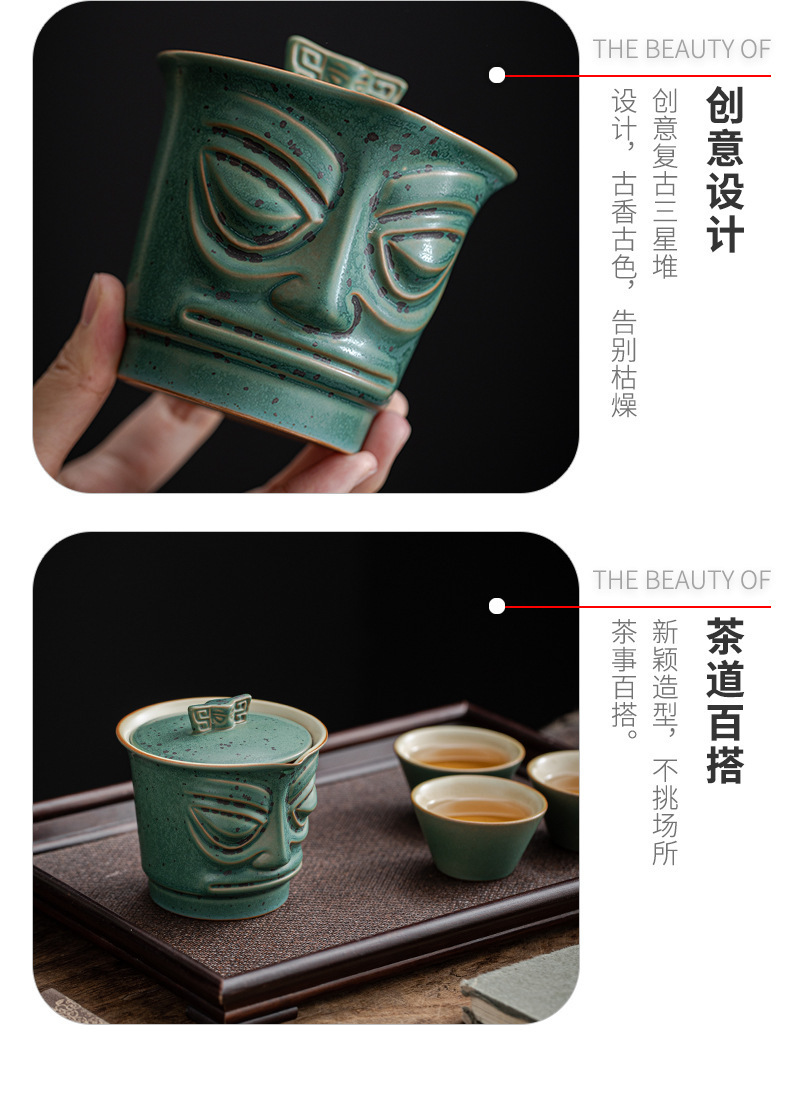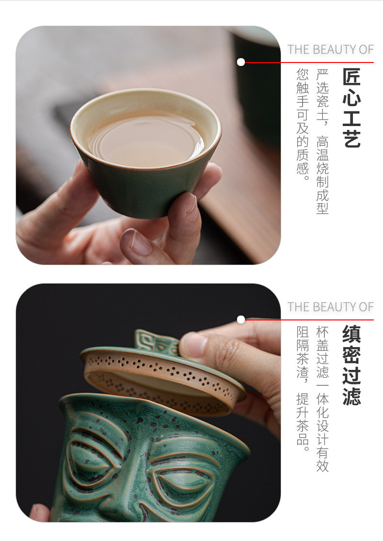 复古三星堆文创便捷式快客杯户外泡茶壶活动礼品LOGO旅行茶具套装 投诉