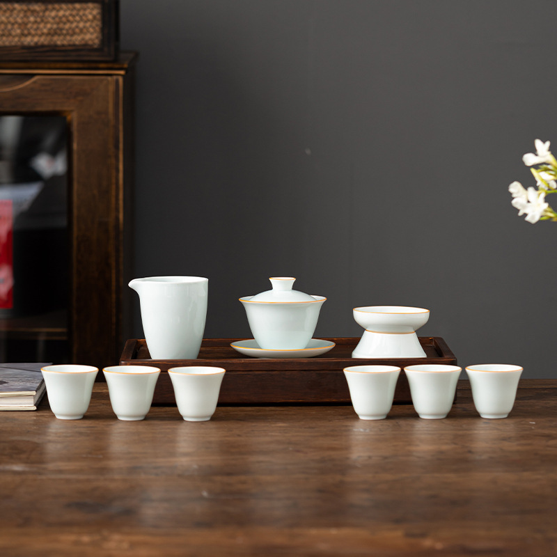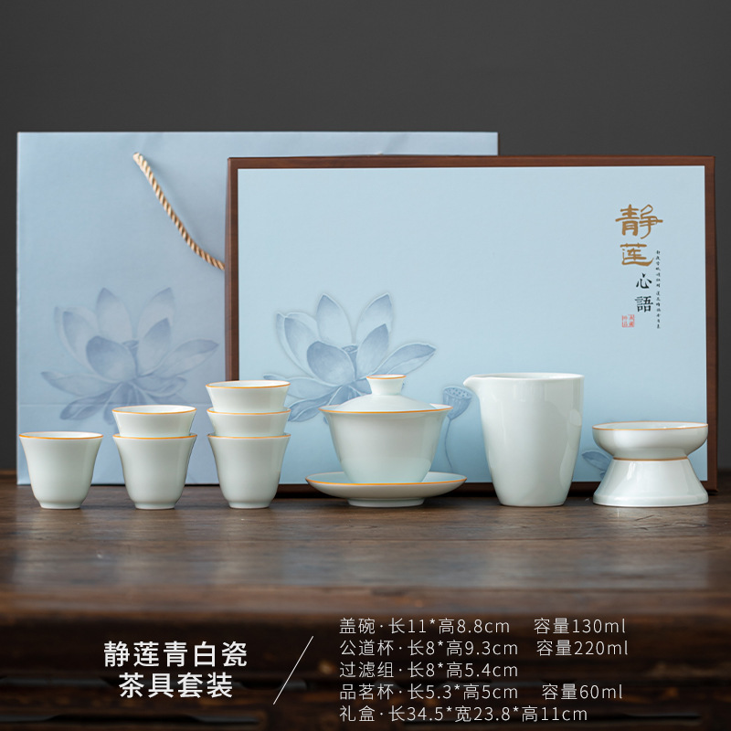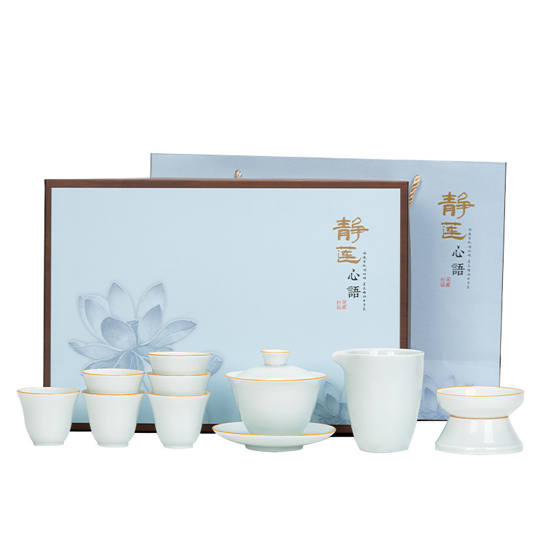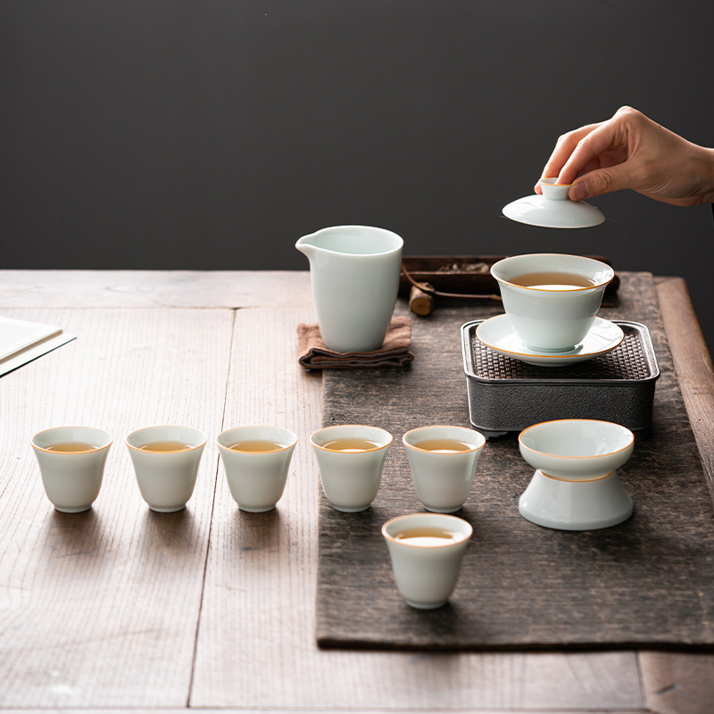 青瓷功夫茶具套装家用青瓷简约茶杯陶瓷泡茶器盖碗套装喝茶礼品