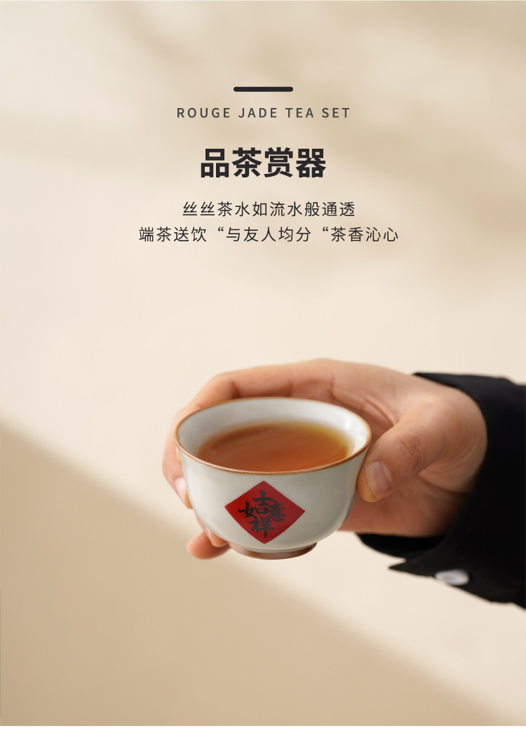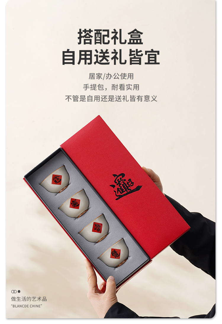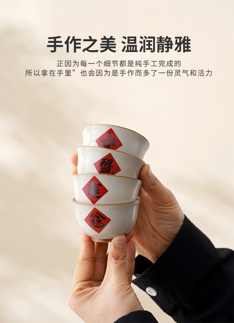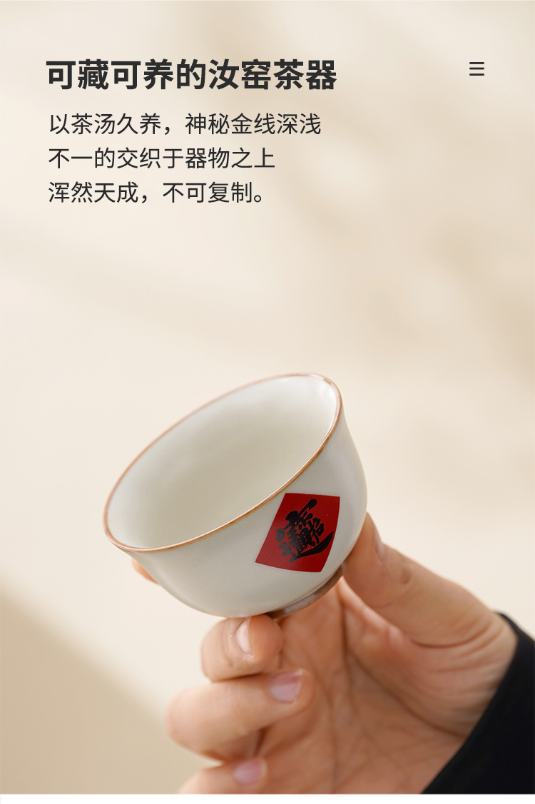 陶瓷汝窑茶杯家用个人主人杯茶具品茗杯企业活动开门红礼品小套装
