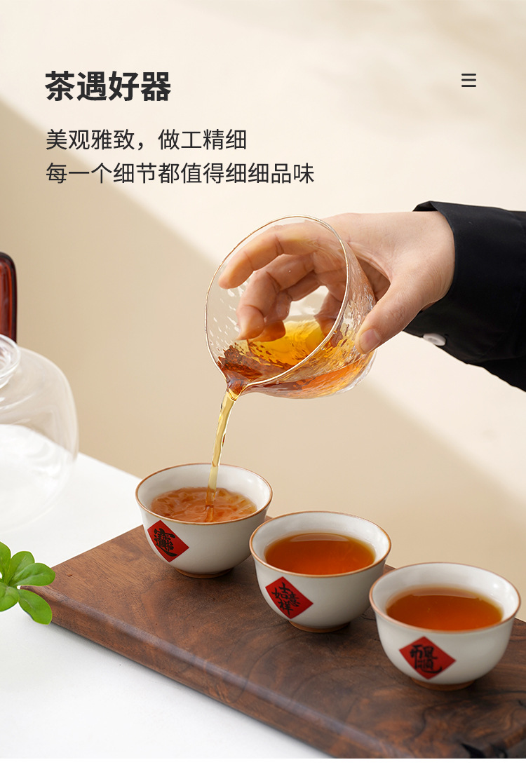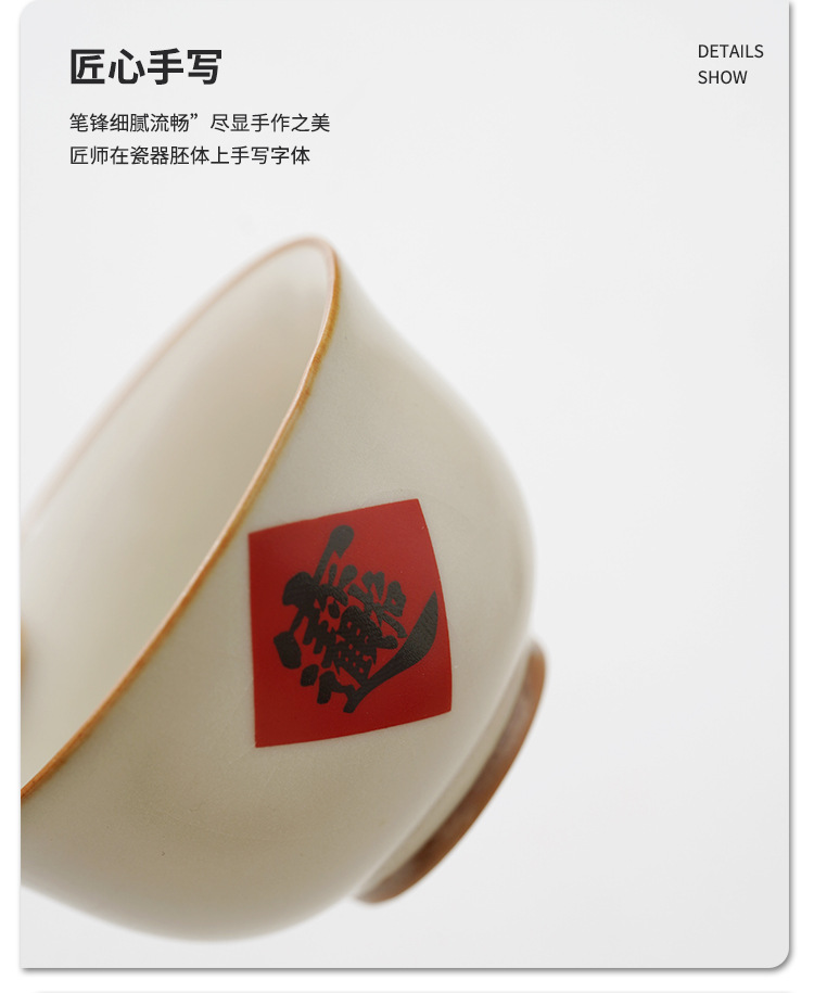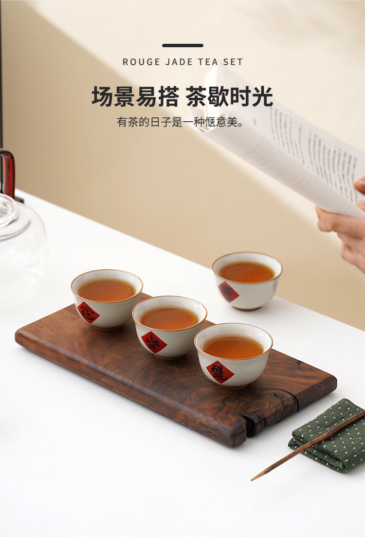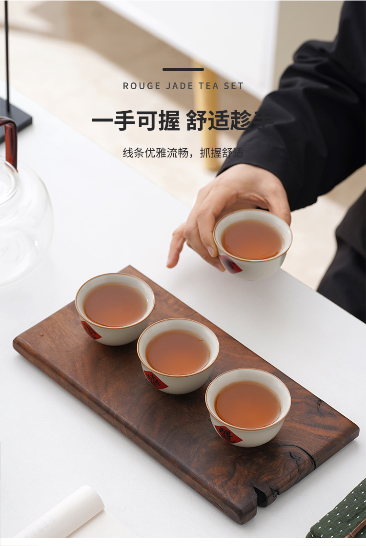 陶瓷汝窑茶杯家用个人主人杯茶具品茗杯企业活动开门红礼品小套装
