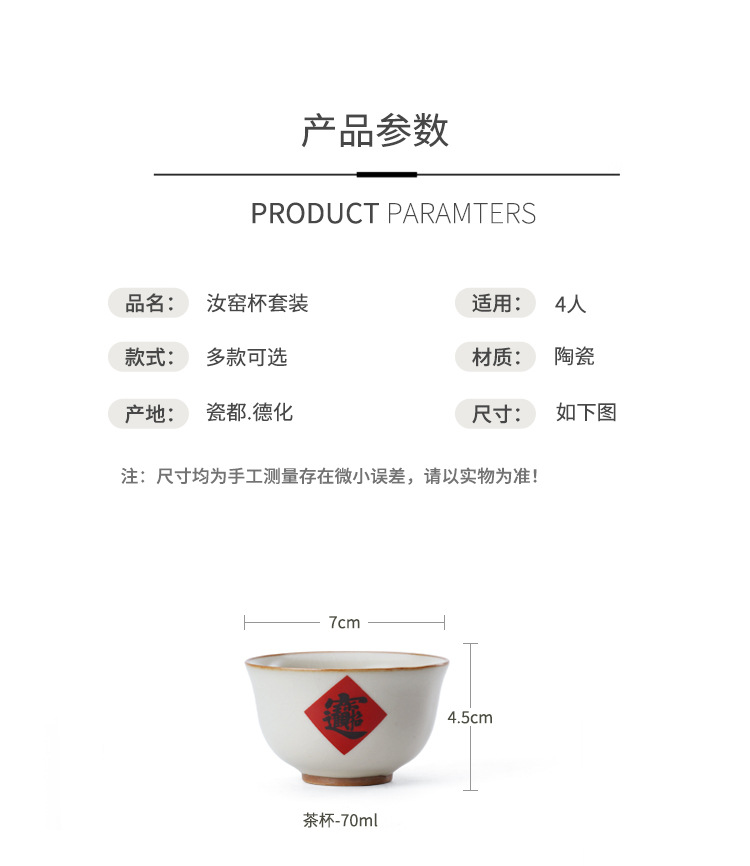陶瓷汝窑茶杯家用个人主人杯茶具品茗杯企业活动开门红礼品小套装 投诉