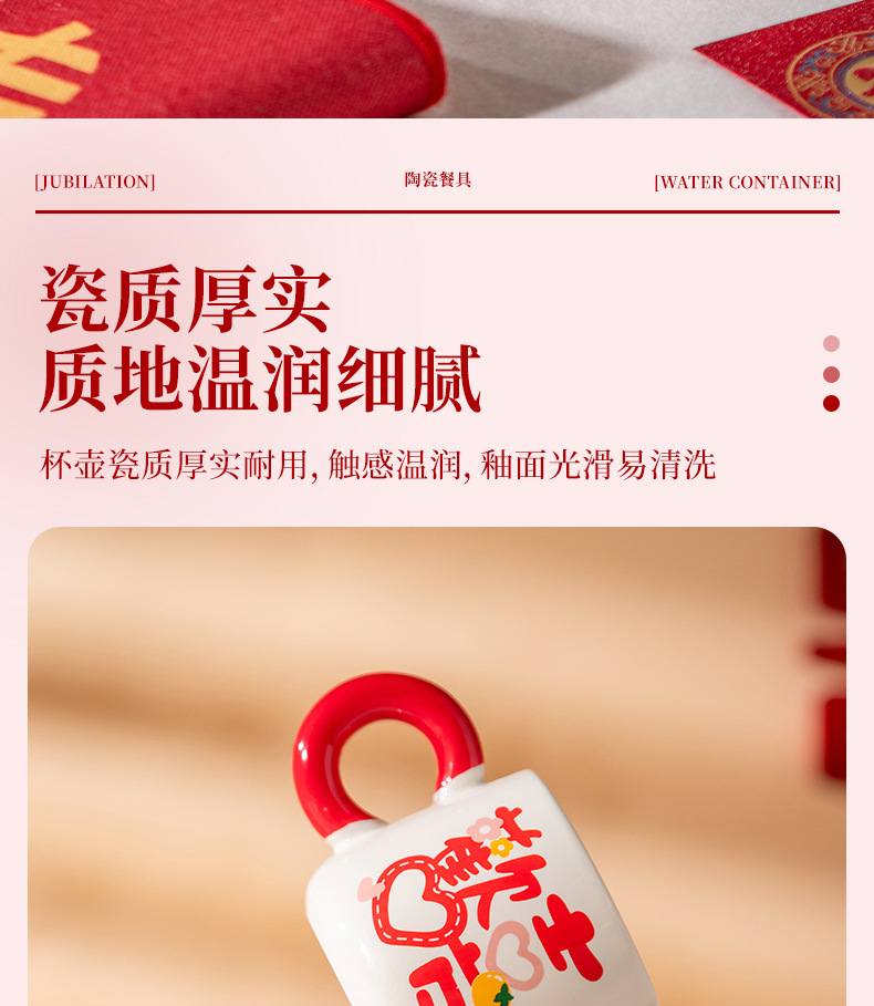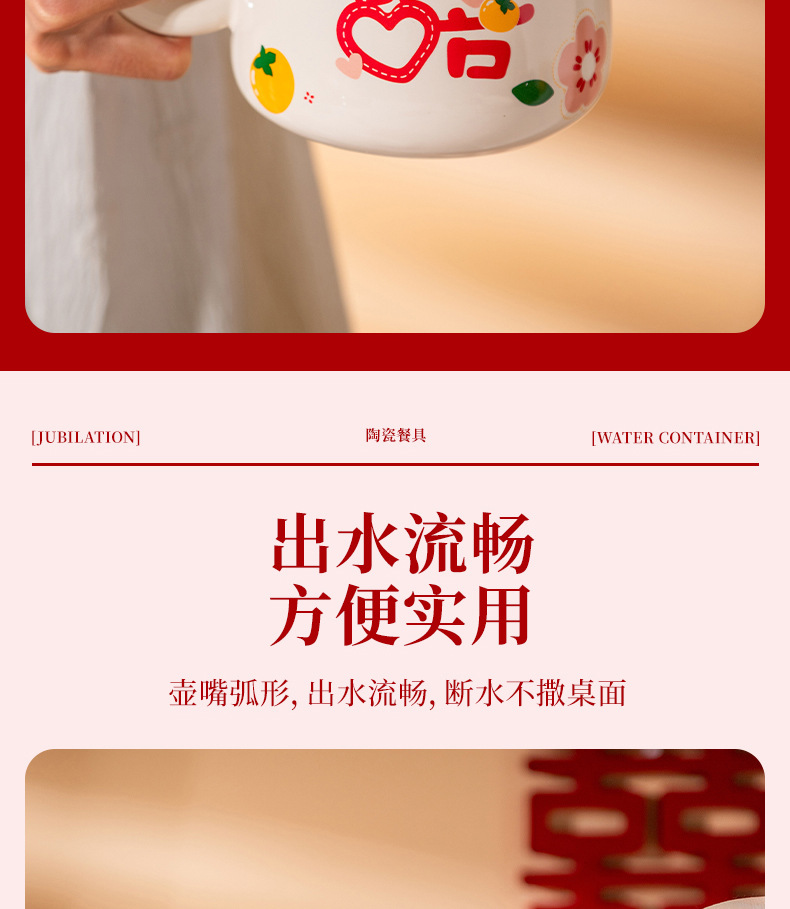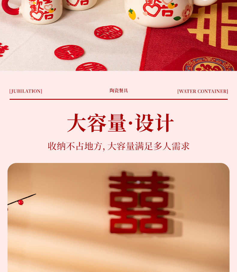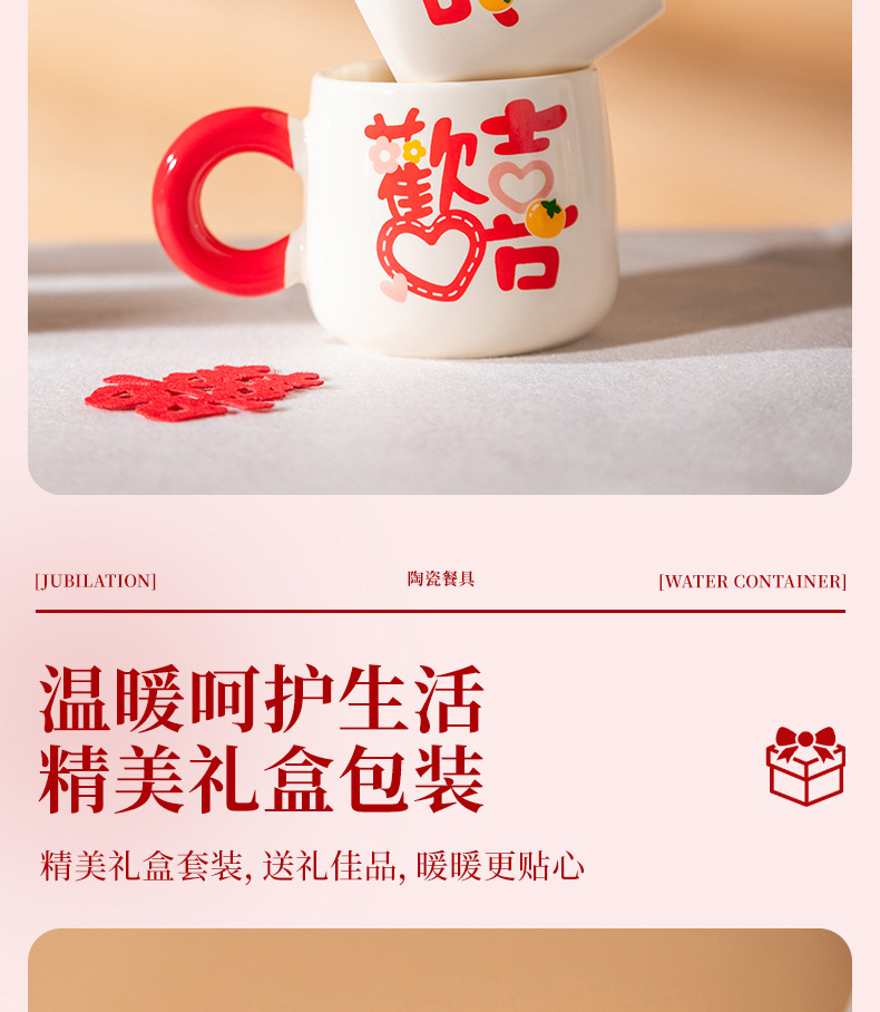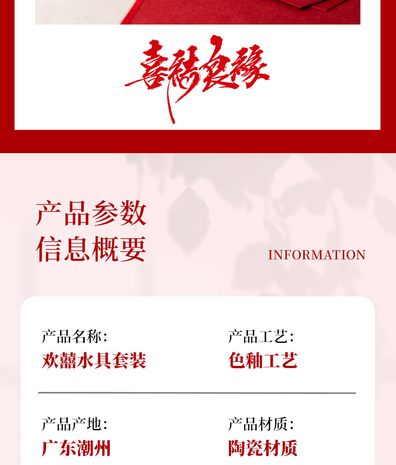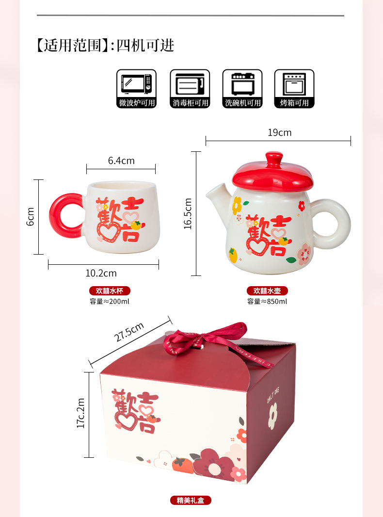 欢喜陶瓷茶具套装花茶壶家用水杯礼盒婚庆喜庆乔迁伴手礼陶瓷水具