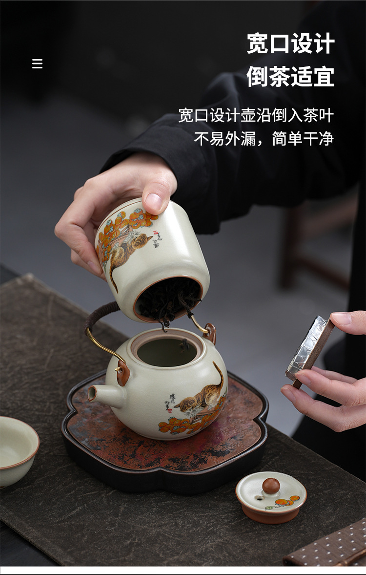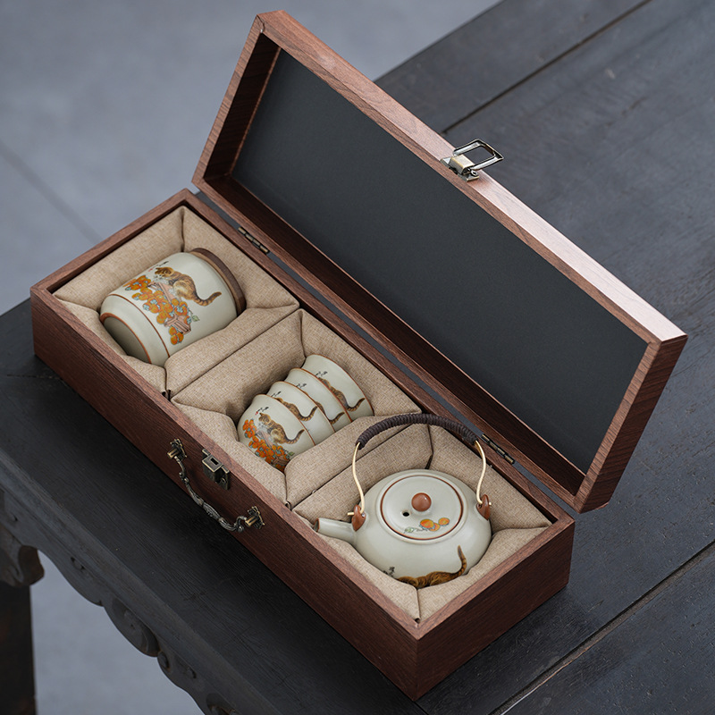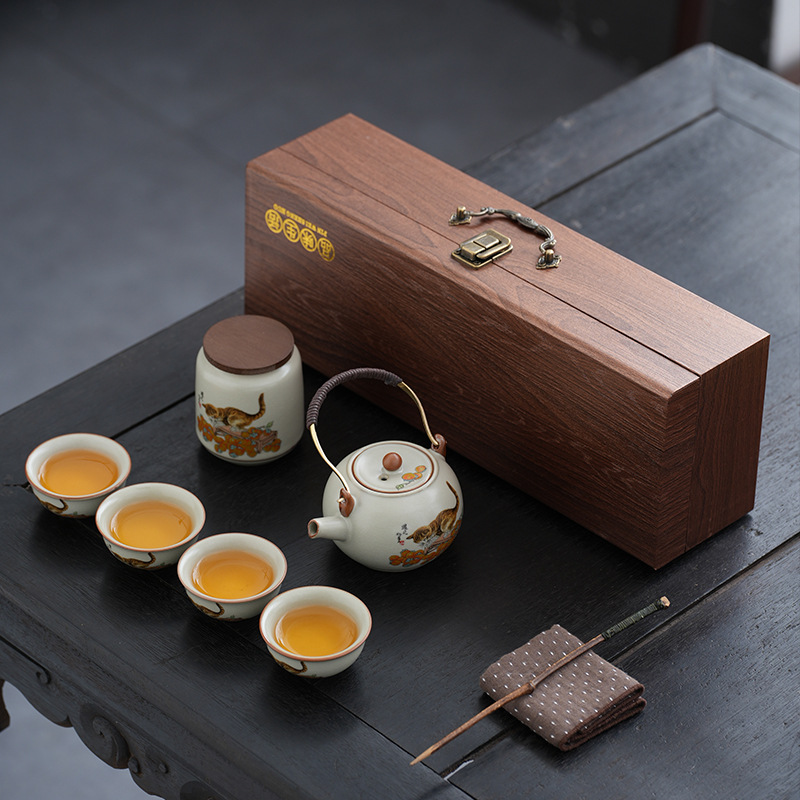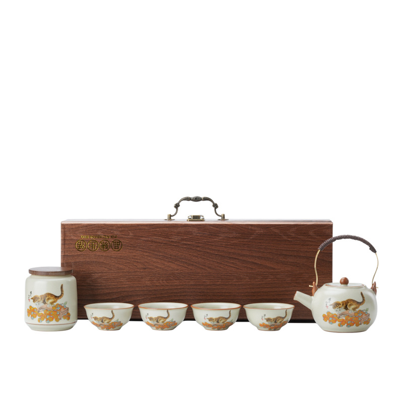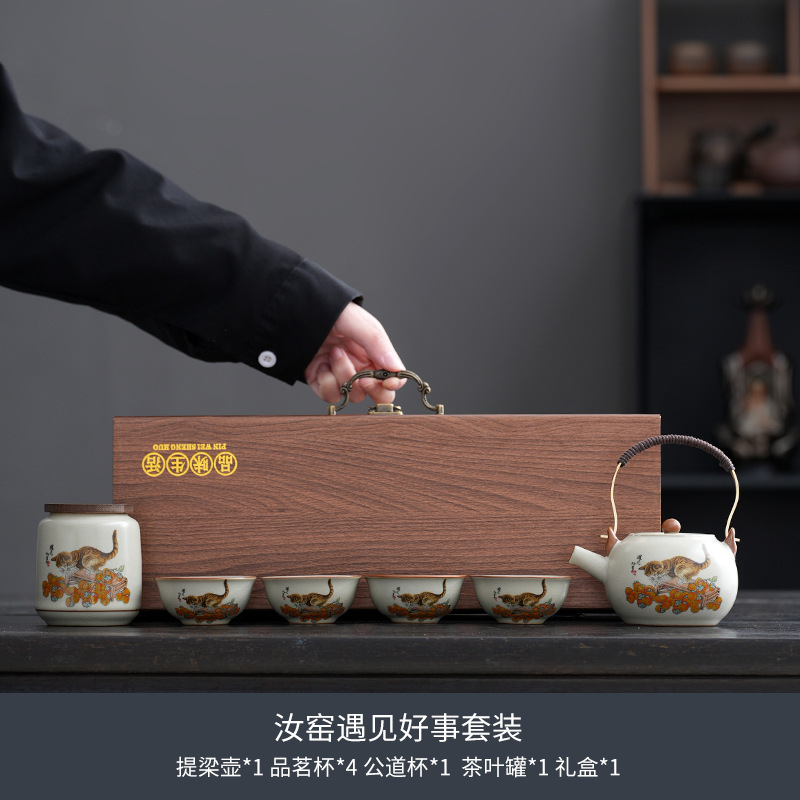 柿子猫汝窑茶具套装礼盒高档轻奢家用陶瓷泡茶壶茶杯商务活动礼品