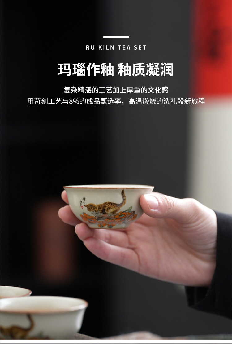 柿子猫汝窑茶具套装礼盒高档轻奢家用陶瓷泡茶壶茶杯商务活动礼品 投诉