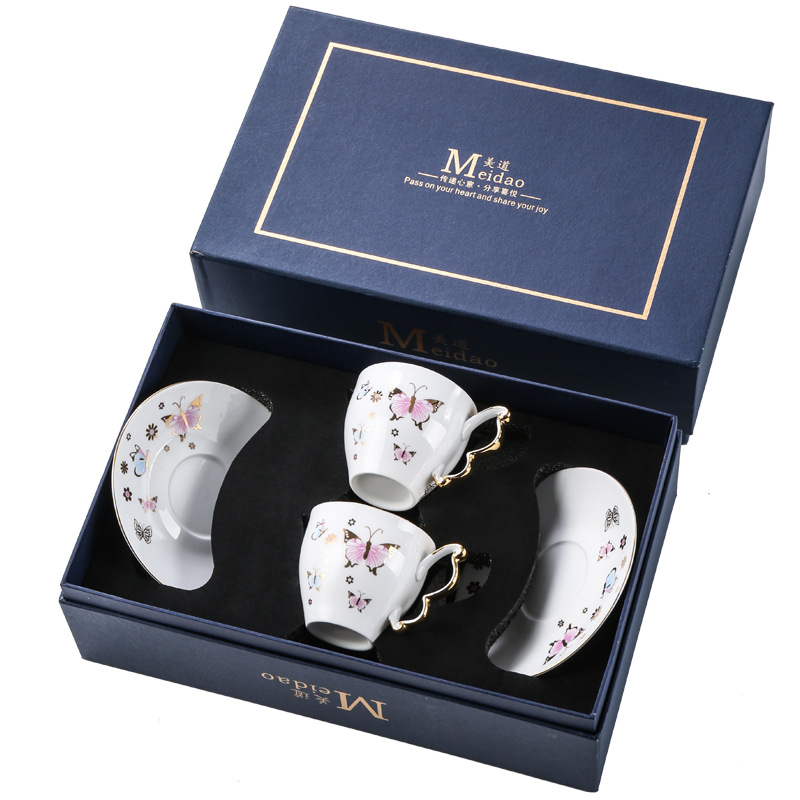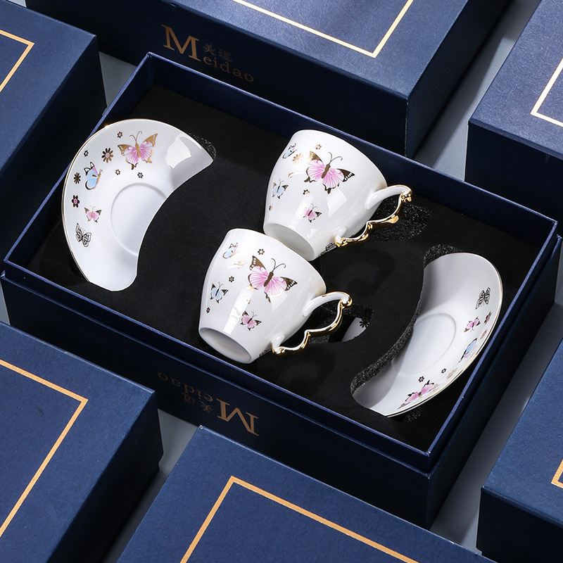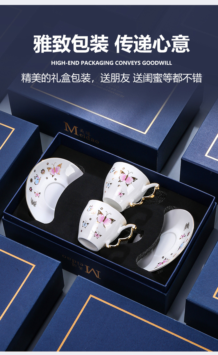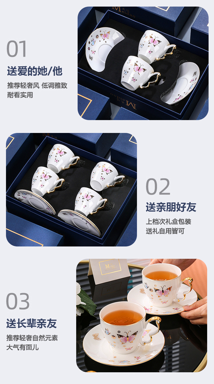 美道「BF蝶」骨瓷咖啡杯子高档精致设计感小众英式下午茶茶具套装