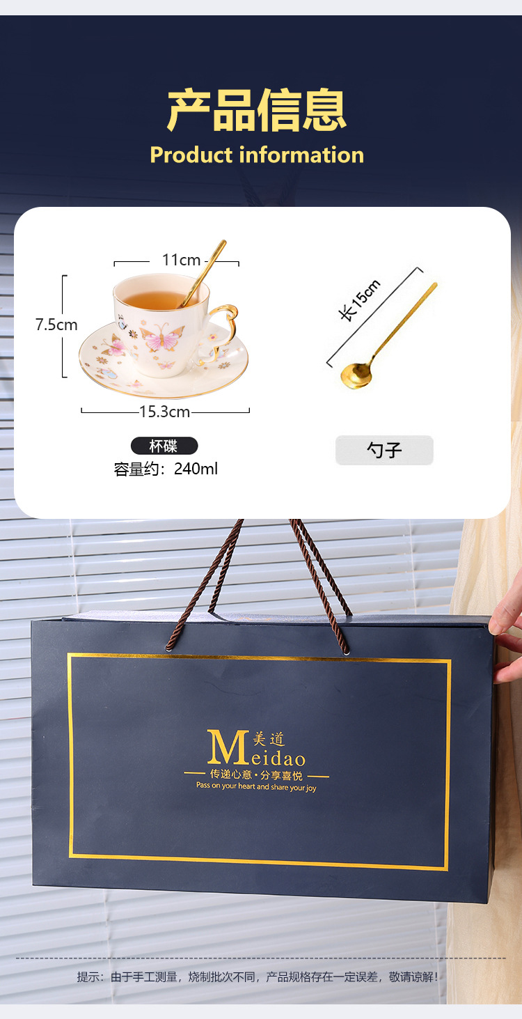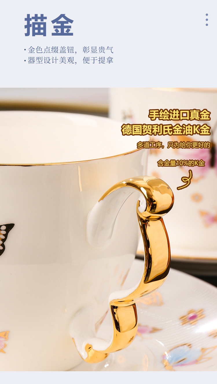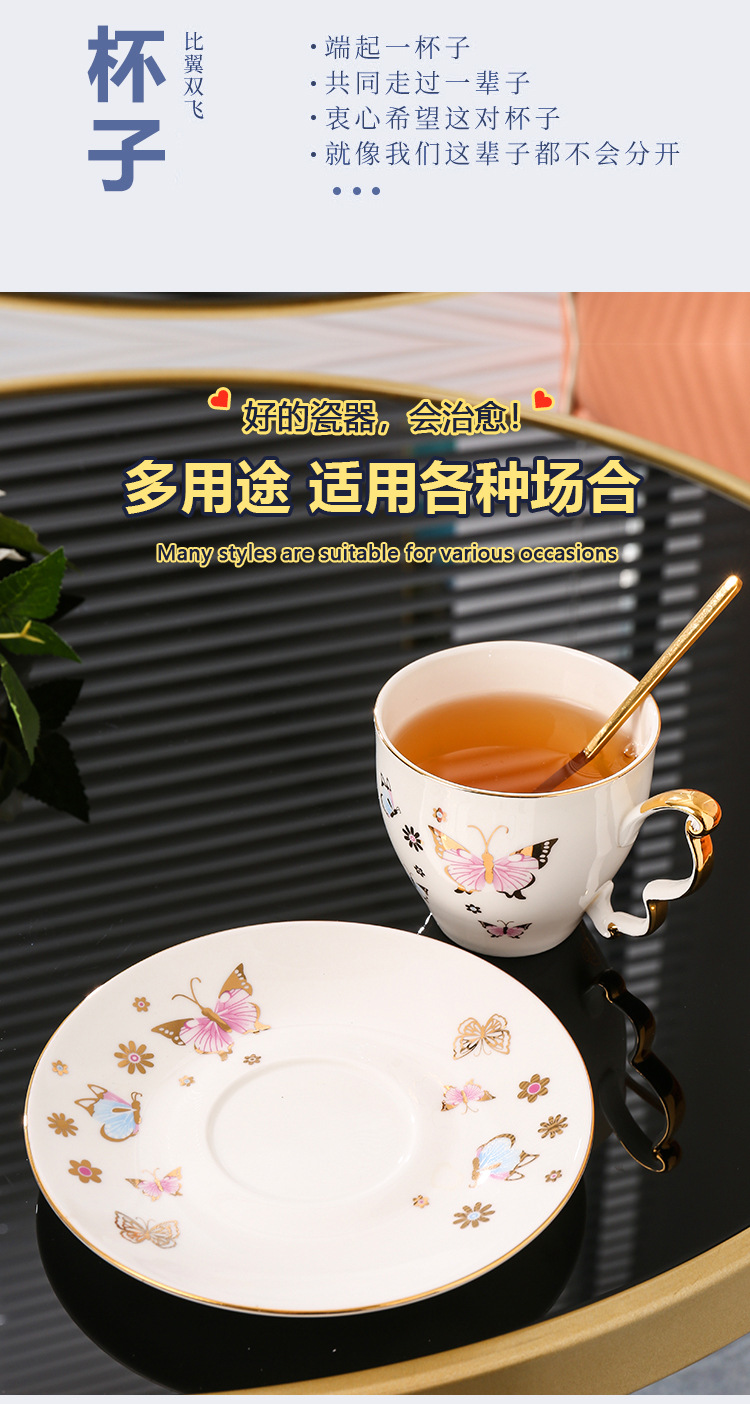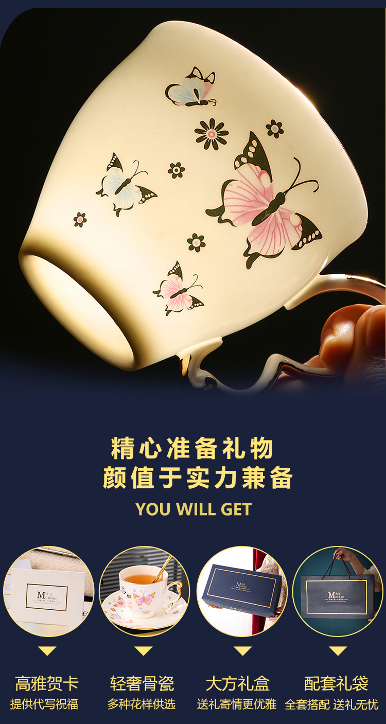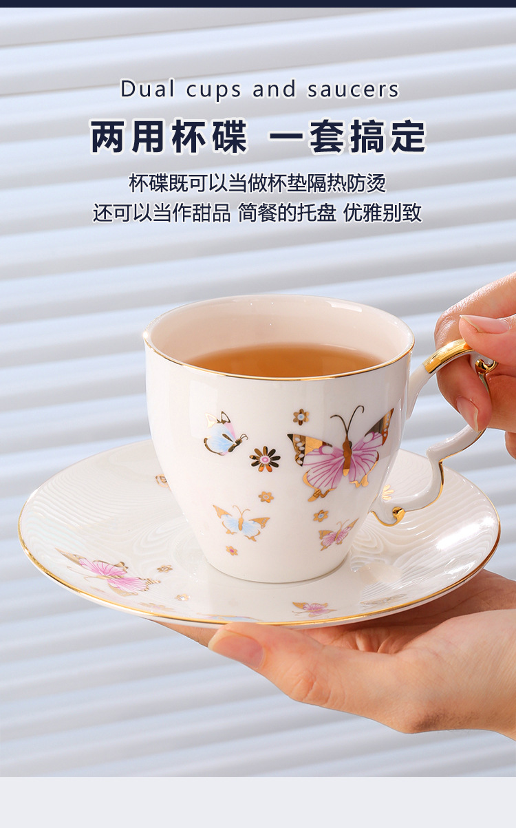 美道「BF蝶」骨瓷咖啡杯子高档精致设计感小众英式下午茶茶具套装 投诉