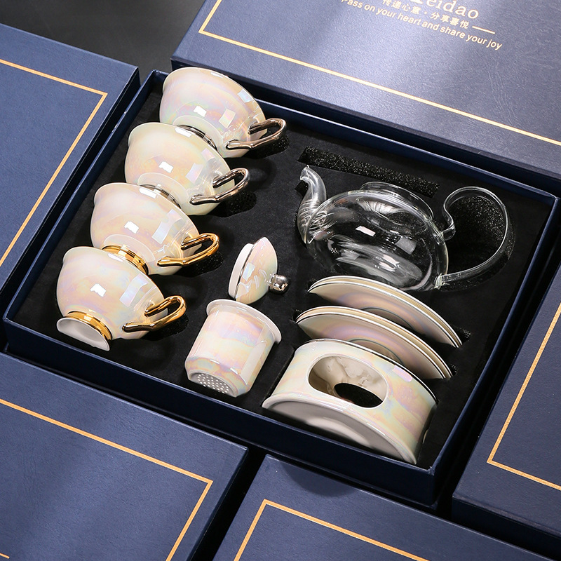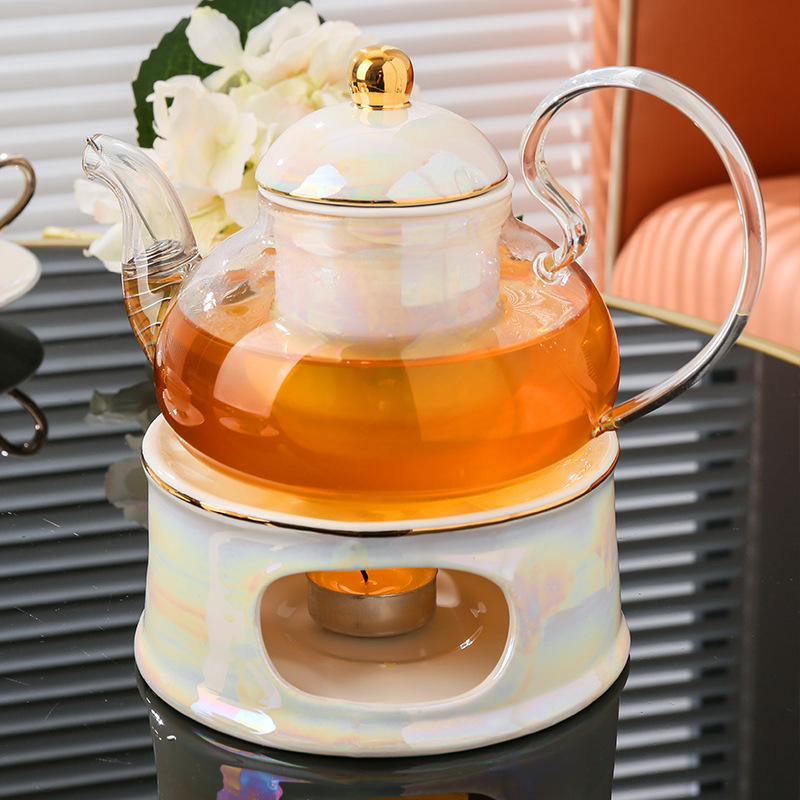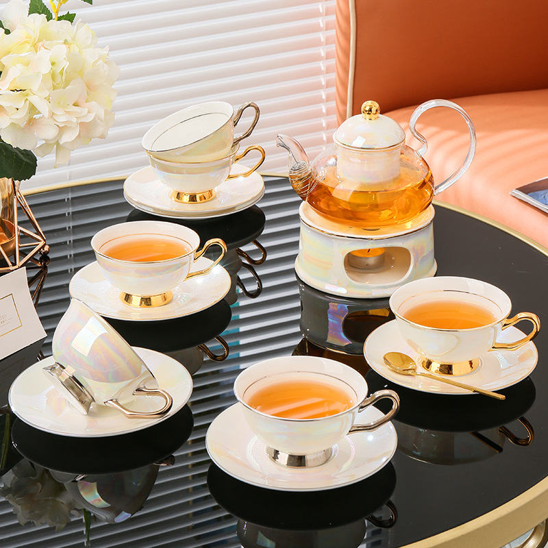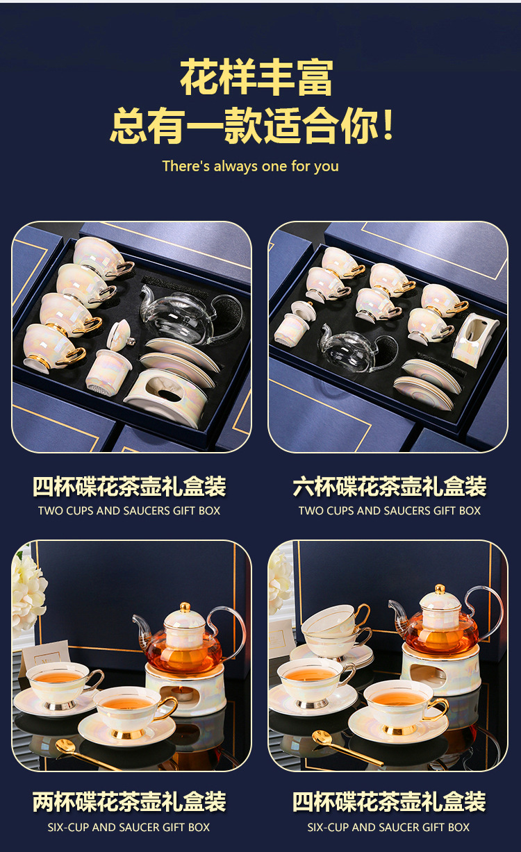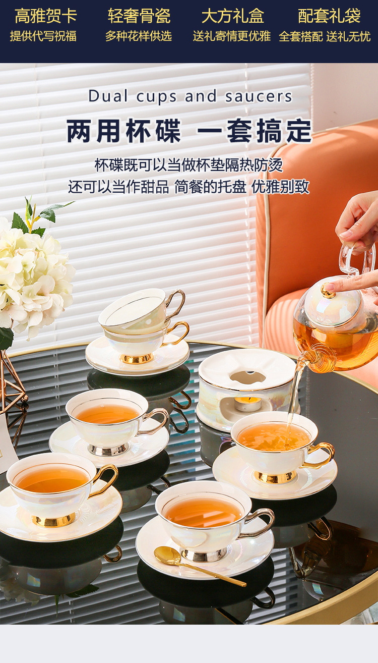 美道 金银河 玻璃泡茶壶蜡烛加热煮茶下午茶茶具套装骨瓷花茶杯
