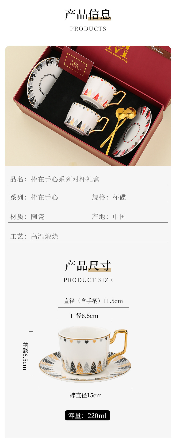 捧在手心-2杯碟勺-贺卡-酒红色礼盒 ¥25190 88套可售