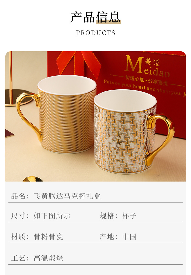 美道 飞黄腾达 马克杯骨瓷水杯生日礼物礼盒情侣杯子一对伴手礼