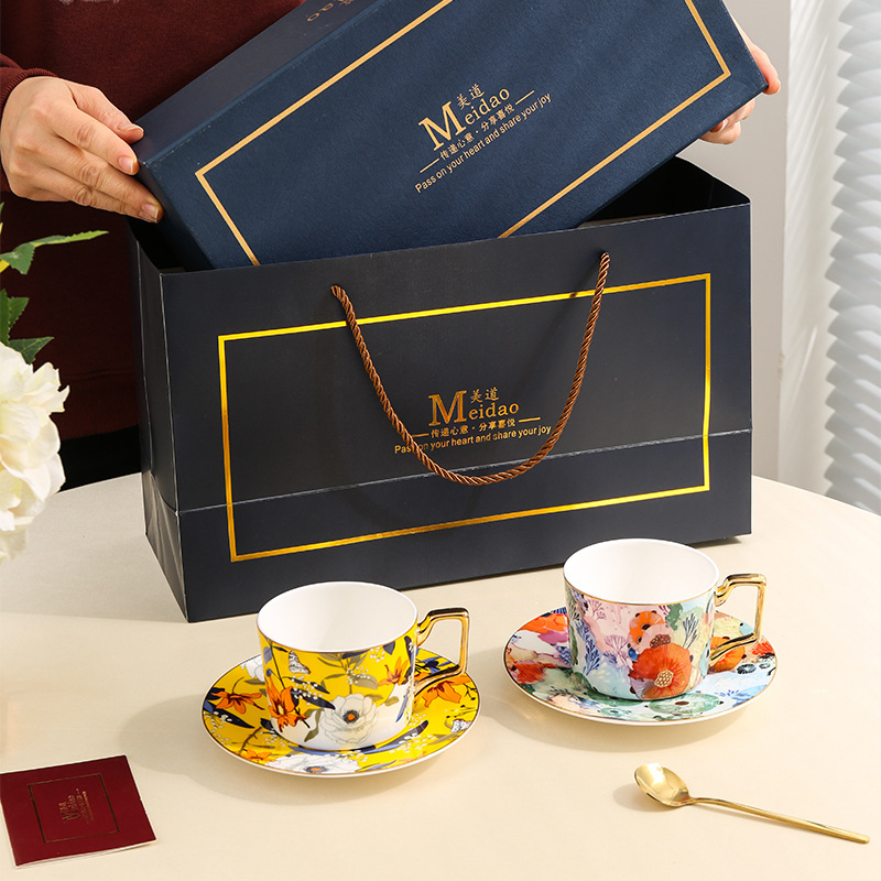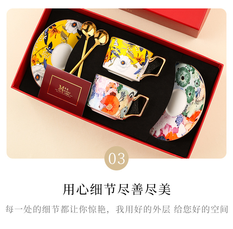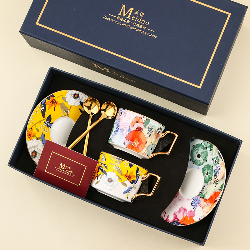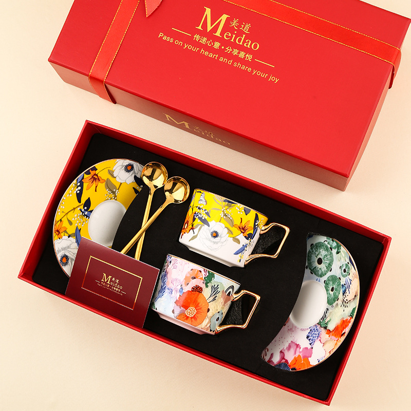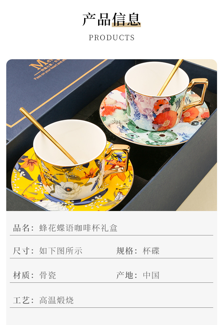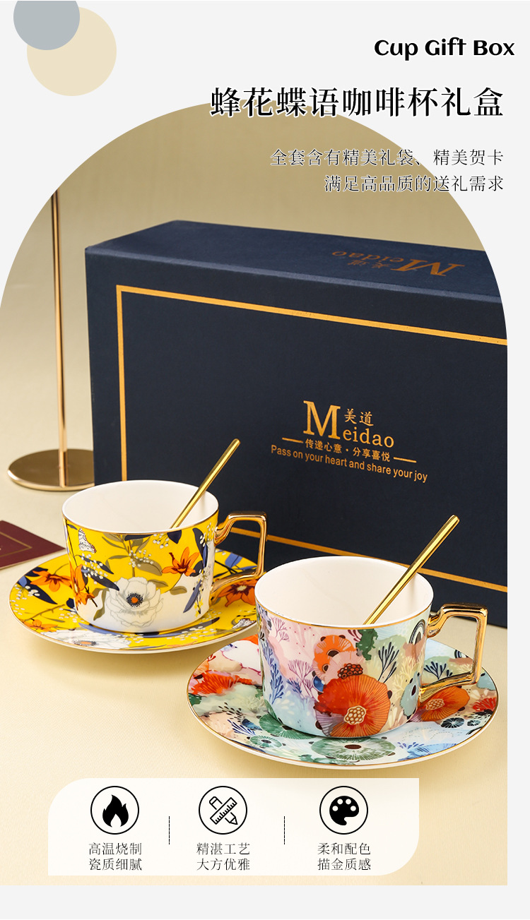 美道 蜂花蝶语 咖啡杯高档精致情侣对杯套装闺蜜女士生日结婚礼物