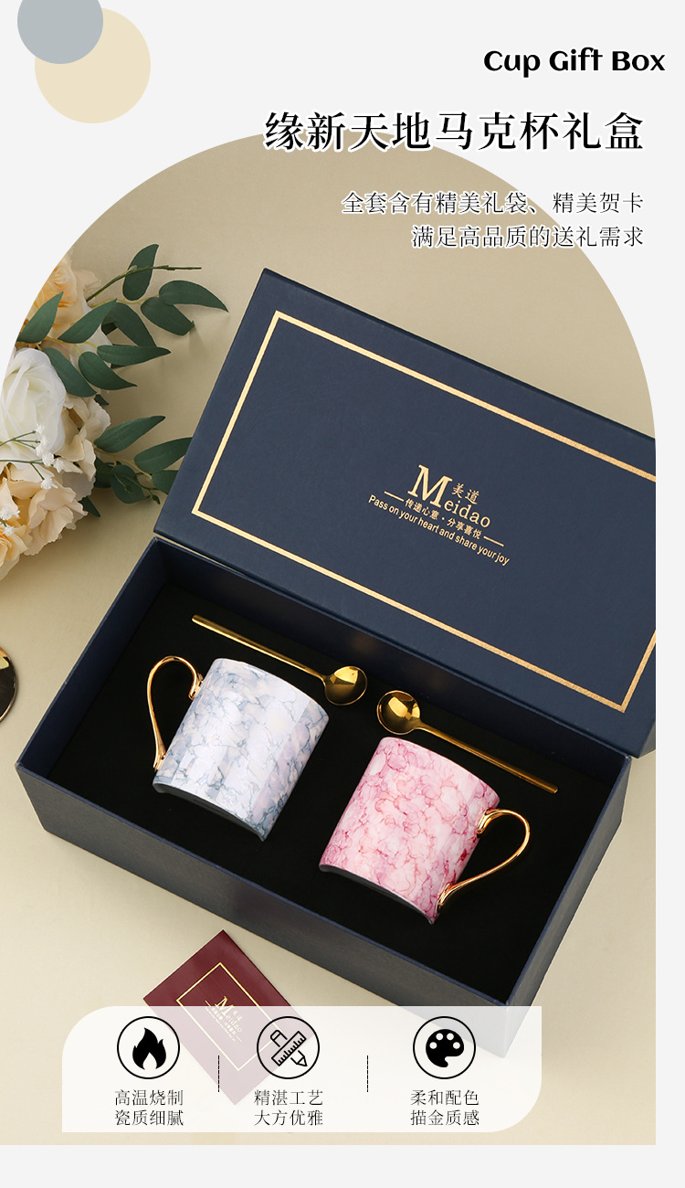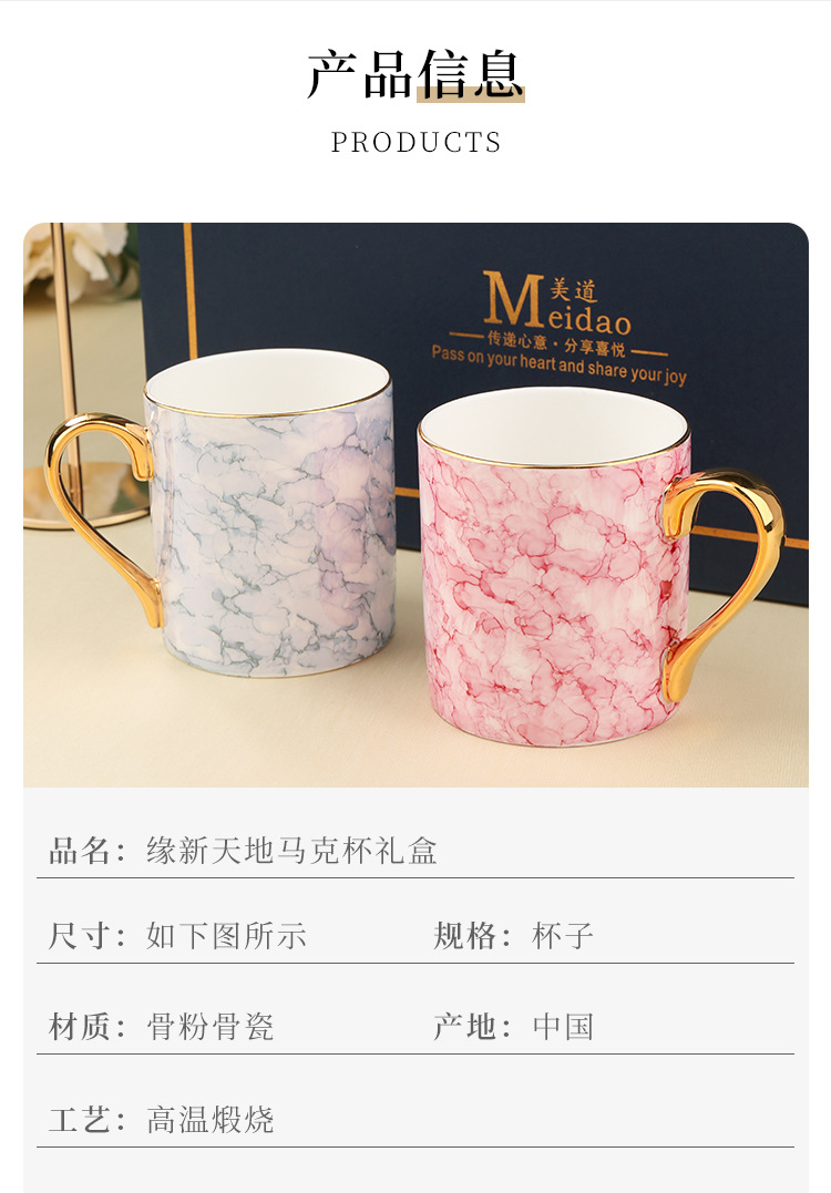 美道 缘新天地 马克杯骨瓷水杯生日礼物礼盒情侣杯子一对伴手礼