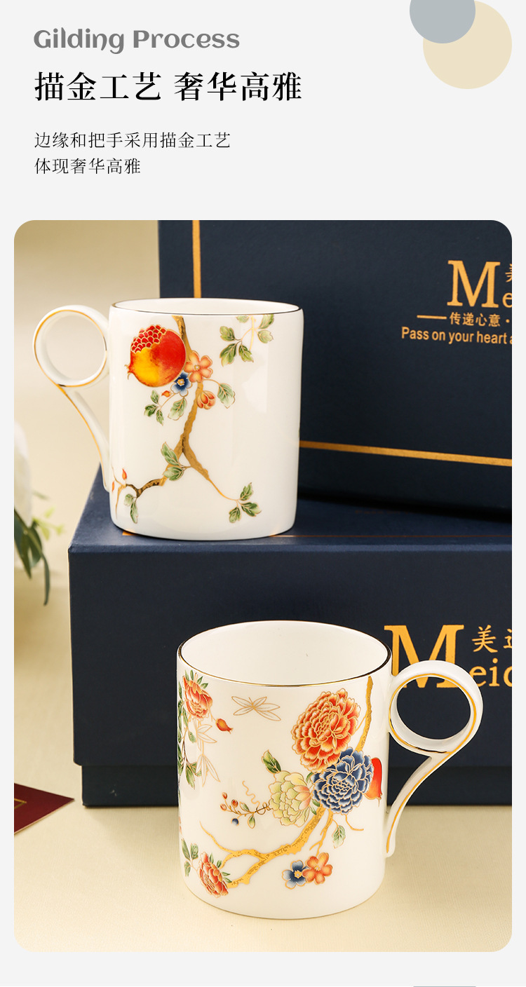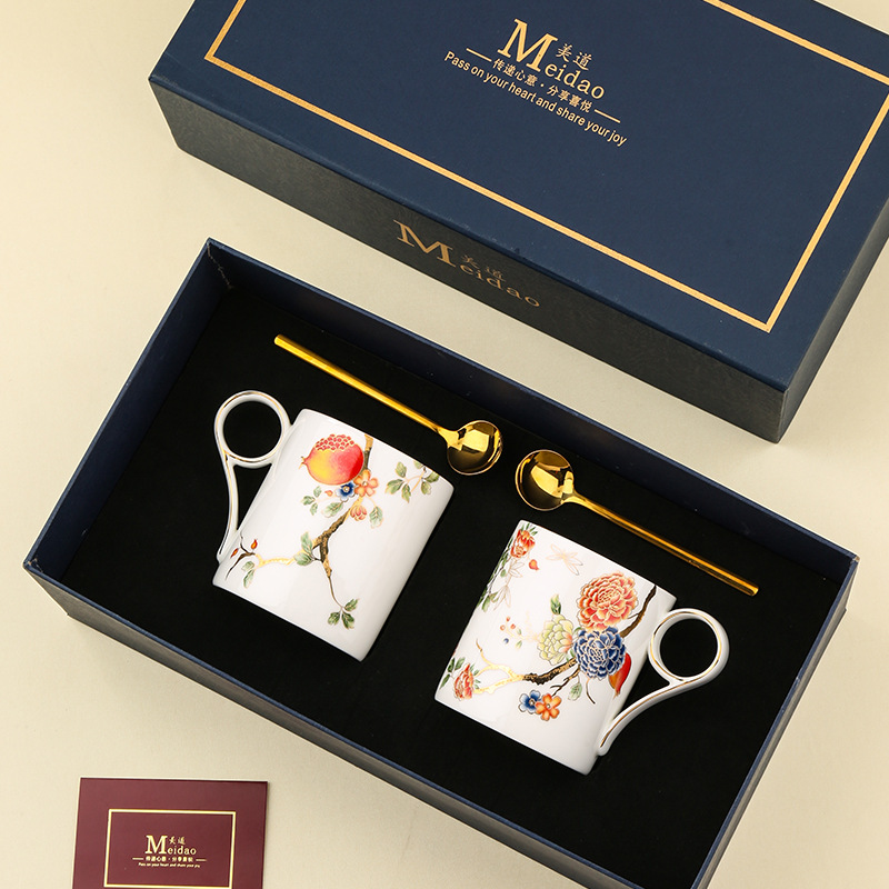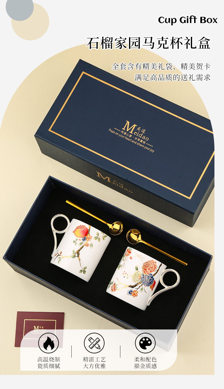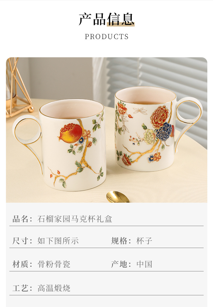 美道 石榴家园 马克杯骨瓷水杯生日礼物礼盒情侣杯子一对伴手礼
